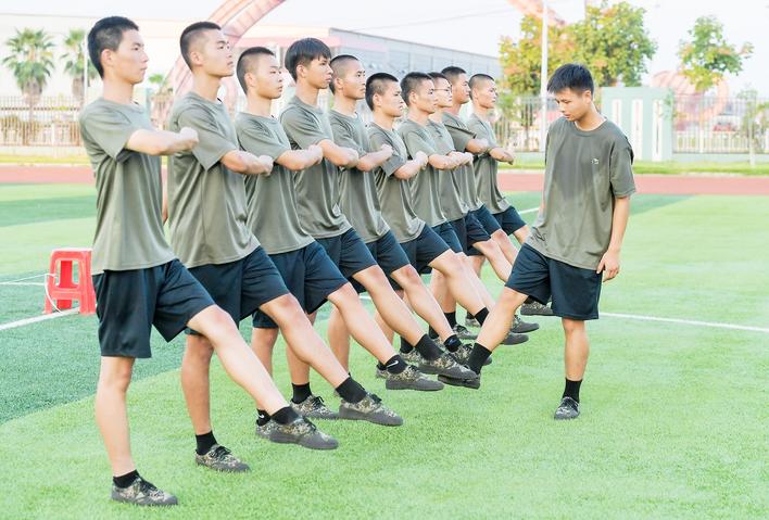 站军姿,踢正步,烈日当空,挥汗如雨,每一个动作的反复练习,都是对坚持的一种践行。