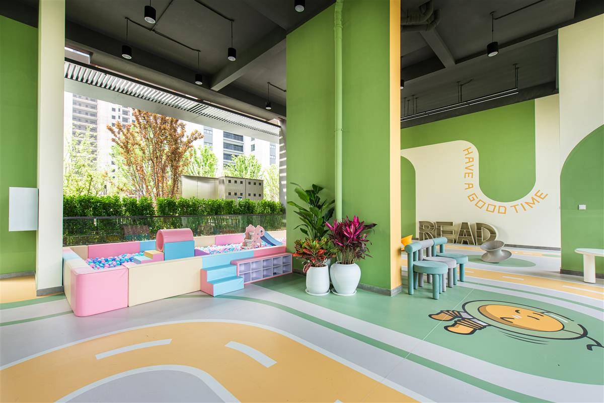 交付细节从业主还未进门就给足诚意:每栋楼楼下的垃圾桶和拖把池“深藏”进绿化带内;架空层最大程度利用,有的设置为“四点半课堂”,布置书桌、课本,物业人员可为业主提供带娃服务,还有的架空层“变身”儿童乐园、健身房等;大门右边安装挂钩,业主回家可以挂伞、拴狗,甚至可以挂住刚买回的菜。