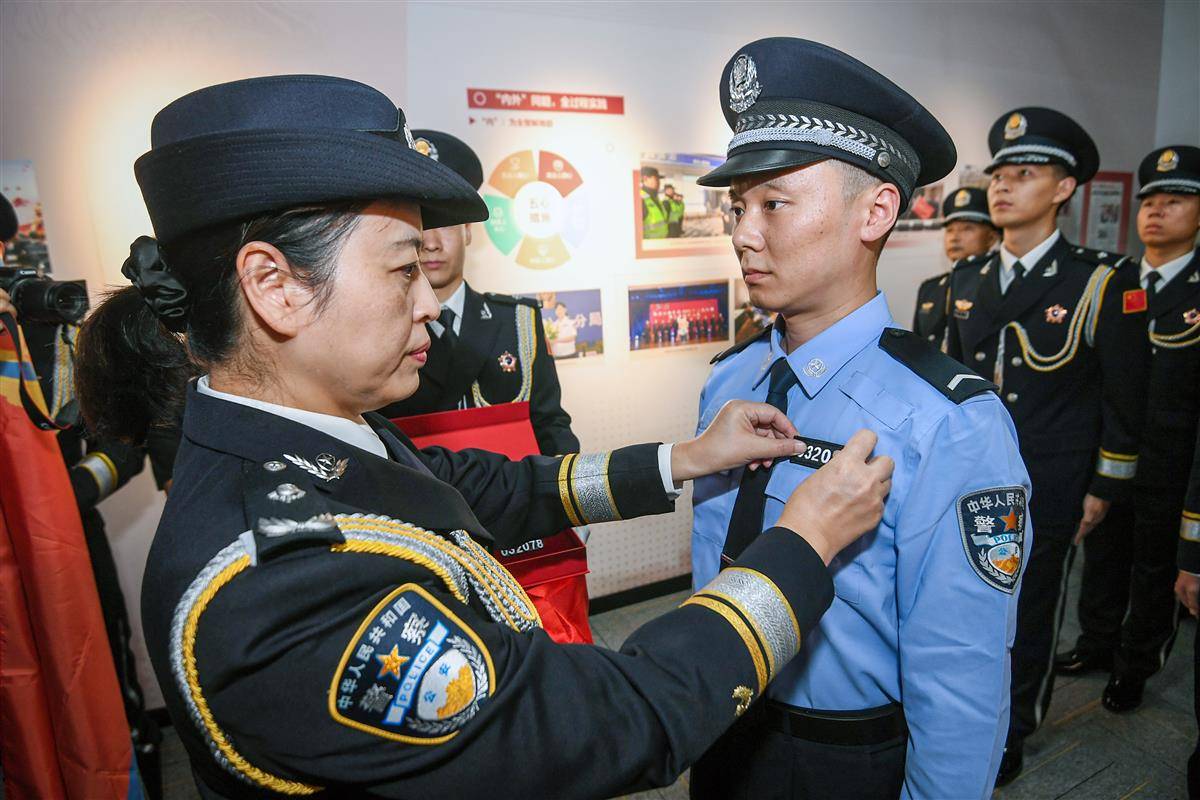 “父亲是我心中的英雄!今天我戴上这枚警号,既是铭记,也是使命,更是激励。我想对父亲说:爸爸,您的职责我接过来了,请您放心,这枚警号就是指引我前行的力量之源,我将用实际行动薪火相承、不负使命,完成您未竟的事业!”鄂靖坚定地说。