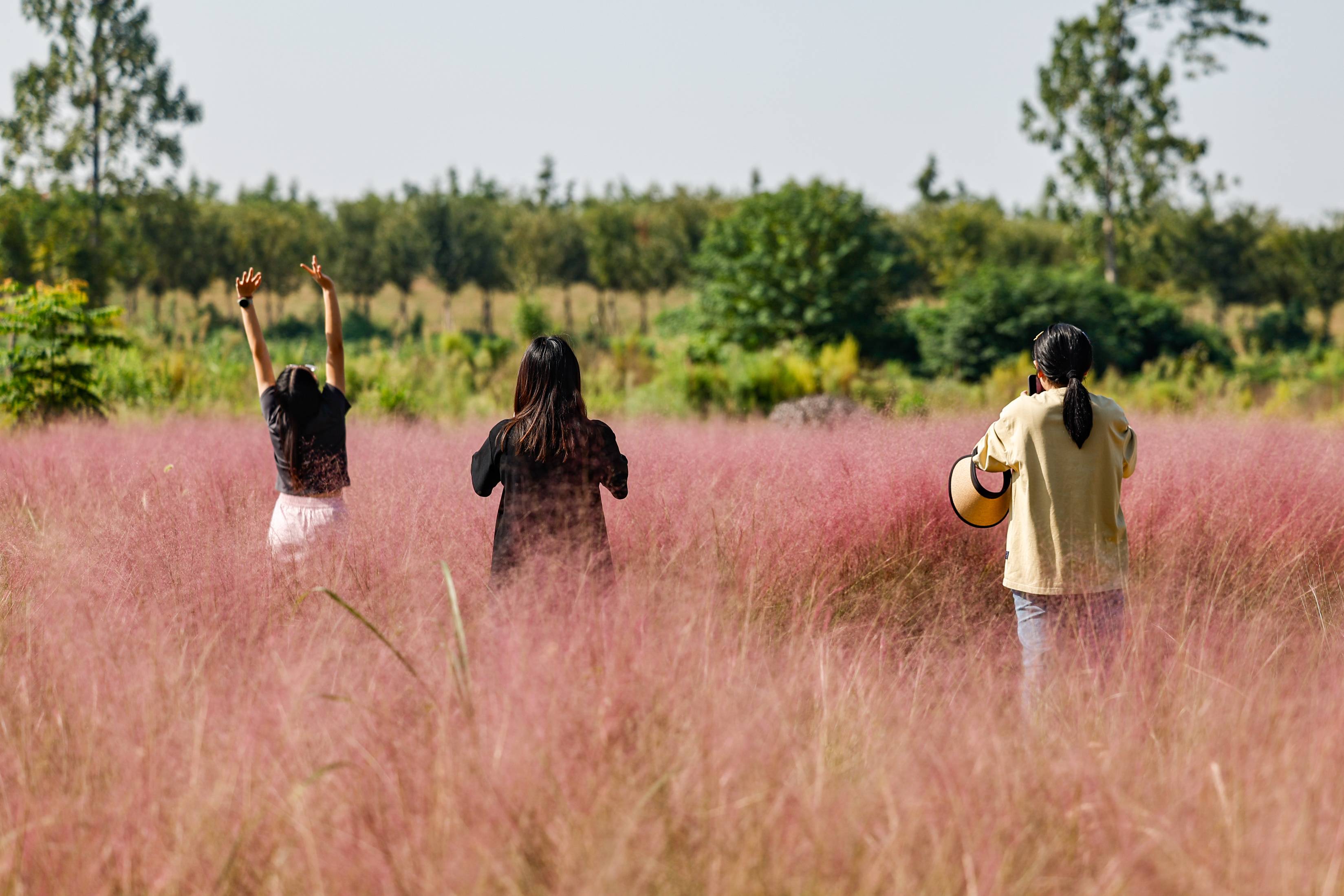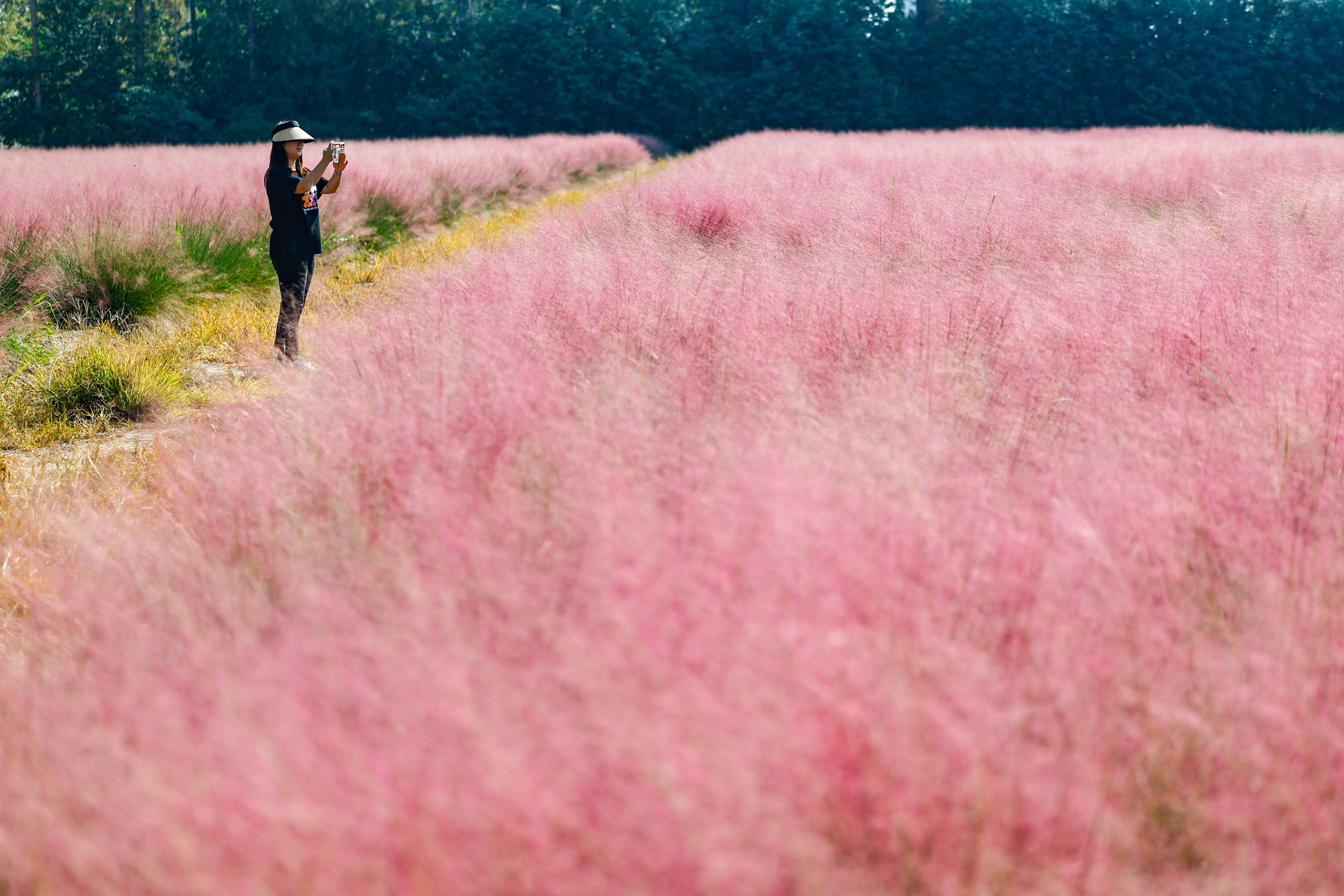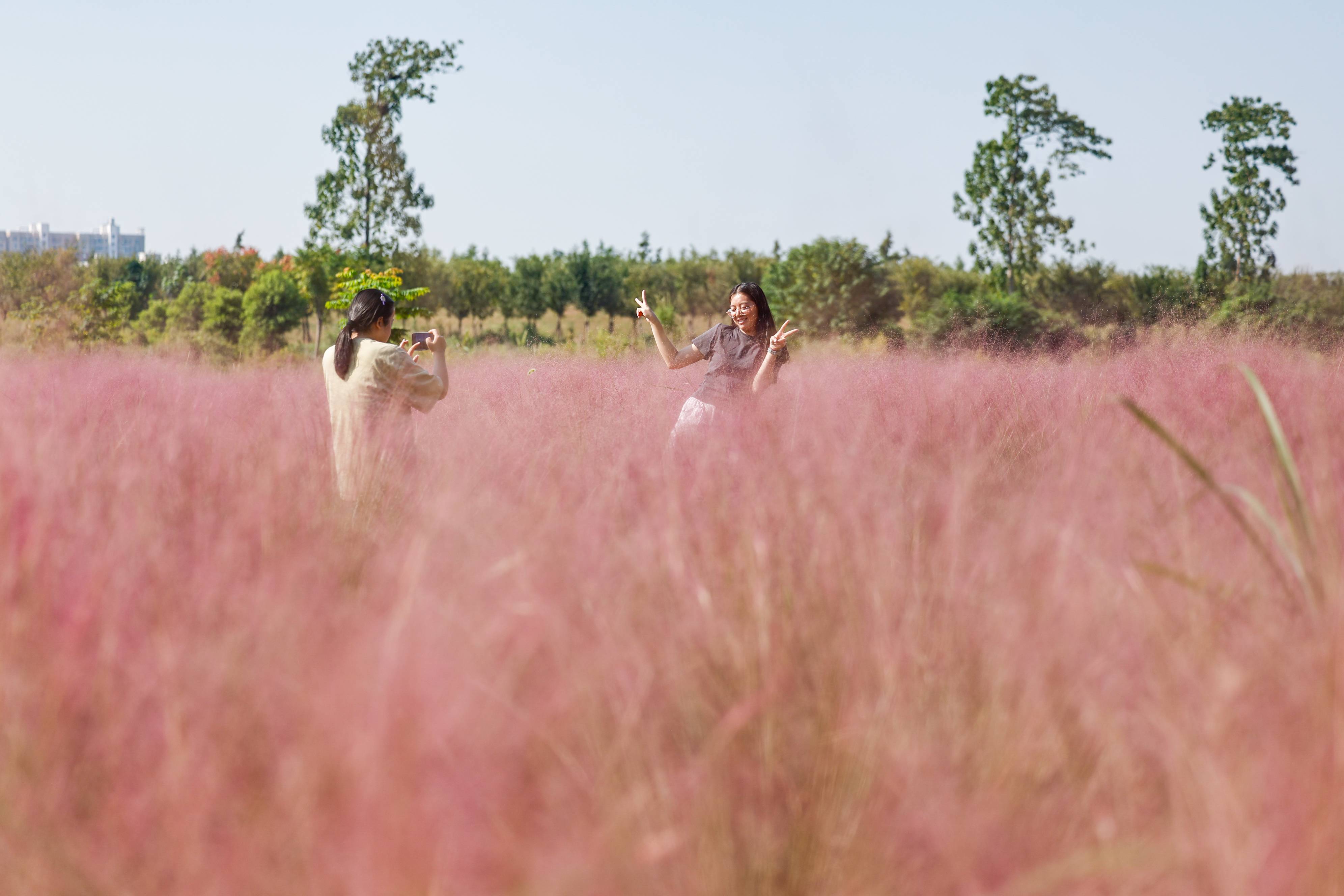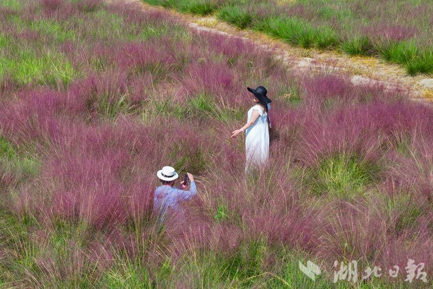 2024年9月24日,在武汉市东西湖区慈惠街渔门径社区,67亩粉黛乱子草进入最佳观赏期,绽放成一片粉色花海,不少路过市民前来拍照打卡。近年来,慈惠街结合季节特点,在道路沿线栽种不同花种,让游客四季有花赏,积极打造人在景中、宜居宜游的美丽乡村新样板,形成具有田园特色的农旅产业链,推动乡村振兴发展。(湖北日报全媒记者 倪娜 通讯员 徐卉婷 晏君 摄)