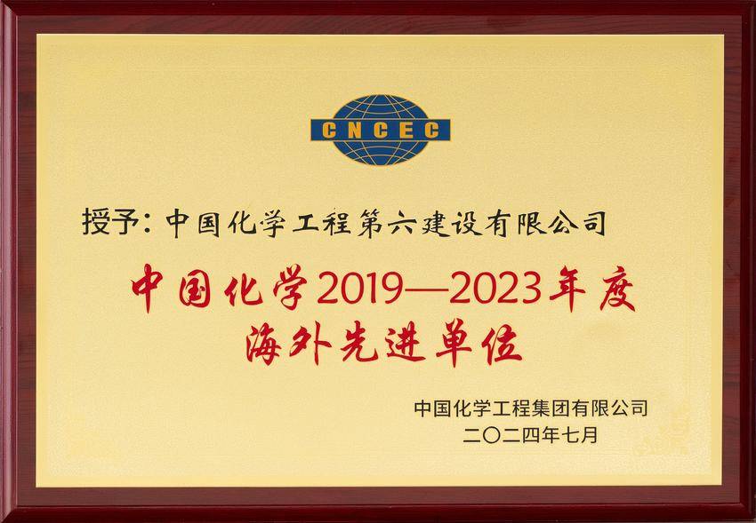 中化六建充分发挥专业优势,持续整合优势资源、创新经营模式,今年7月,在中国化学召开的2024年度海外经营工作会议上,中化六建荣膺中国化学2019-2023年度海外先进单位,公司国际经营部荣获海外优秀工作团队称号。