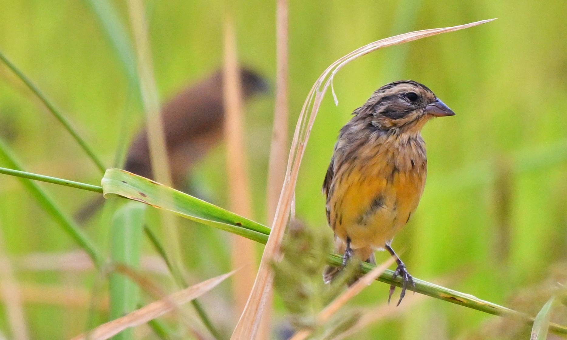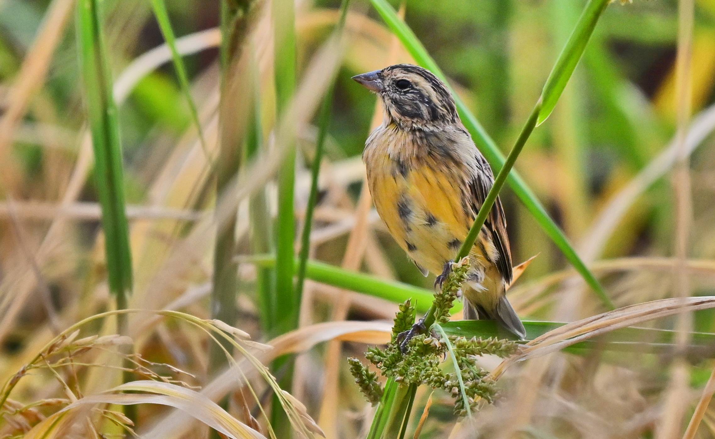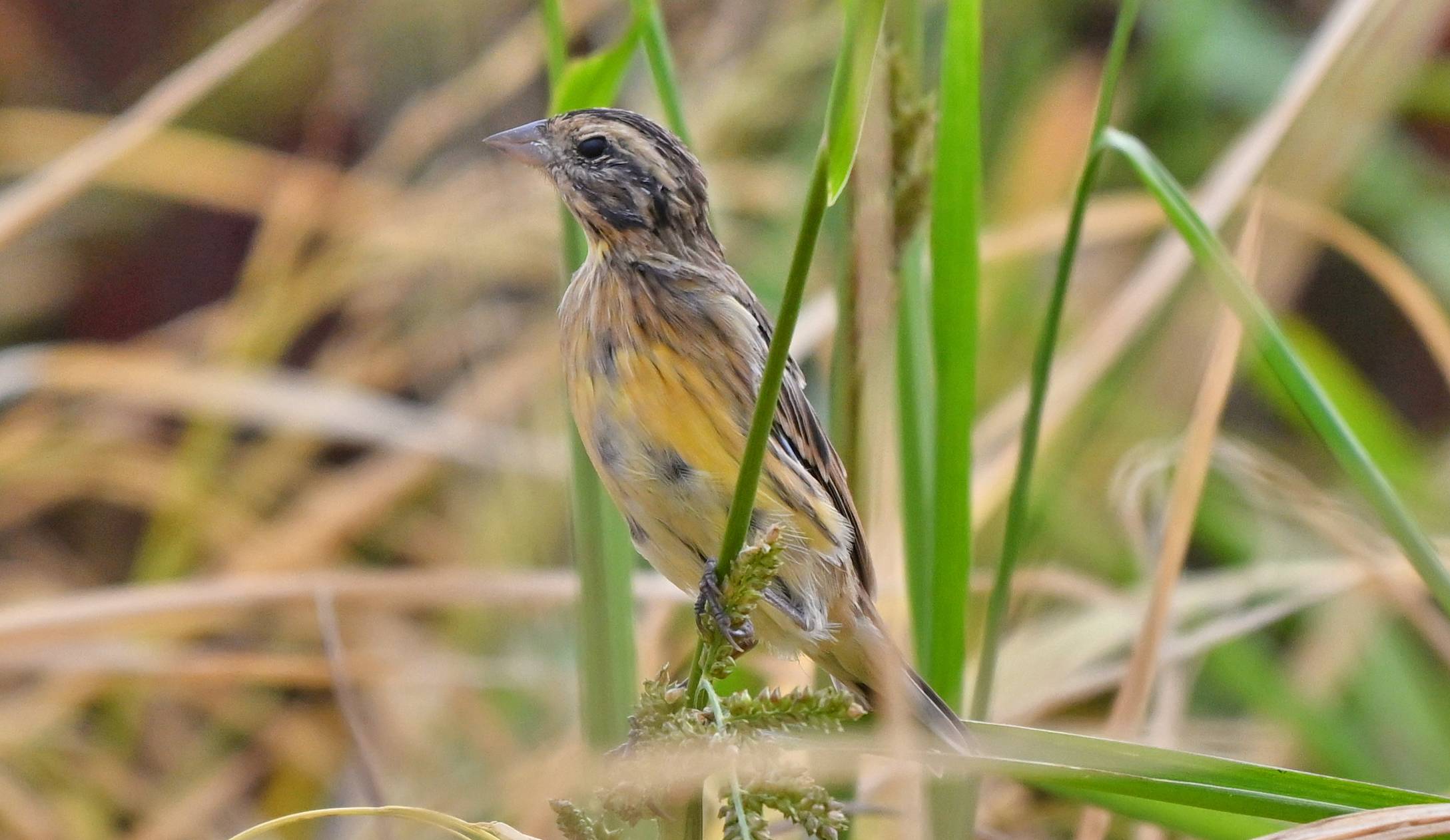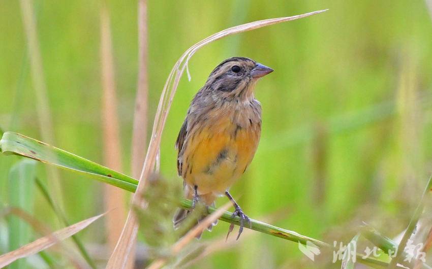 9月25日,记者在宜昌市卷桥河湿地观赏性稻田中拍摄到了国家一级重点保护野生鸟类黄胸鹀。黄胸鹀俗称禾花雀,体长14-15厘米,喜欢在环境优良的灌丛中觅食生活,是典型的河谷草甸灌丛草地鸟类。2017年世界自然保护联盟将黄胸鹀的评级从“濒危”升为“极危”,2021年中国更是将黄胸鹀升级为国家一级重点保护野生动物。宜昌市保有湿地8.24万公顷。卷桥河湿地通过植物、生物清淤及自然护坡等修复措施,重构了岸线生态系统,近年来,卷桥河湿地已观测斑头鸺鹠、黑鸢、蓝喉歌鸲、画眉、红嘴相思鸟等鸟类50多种,其中,连续三年观测到成群迁徙的黄胸鹀从此过境。(湖北日报全媒记者 刘曙松 摄)