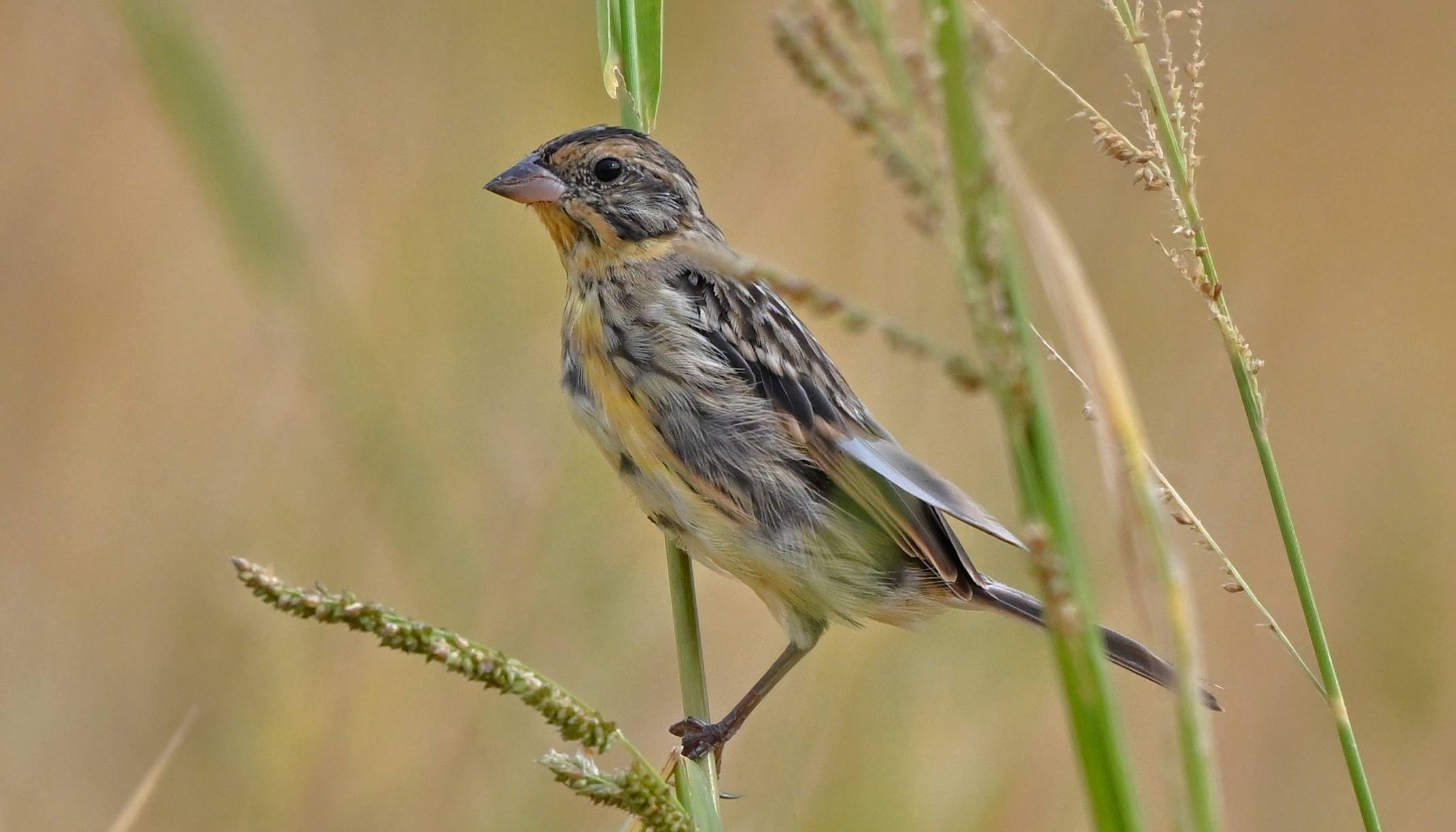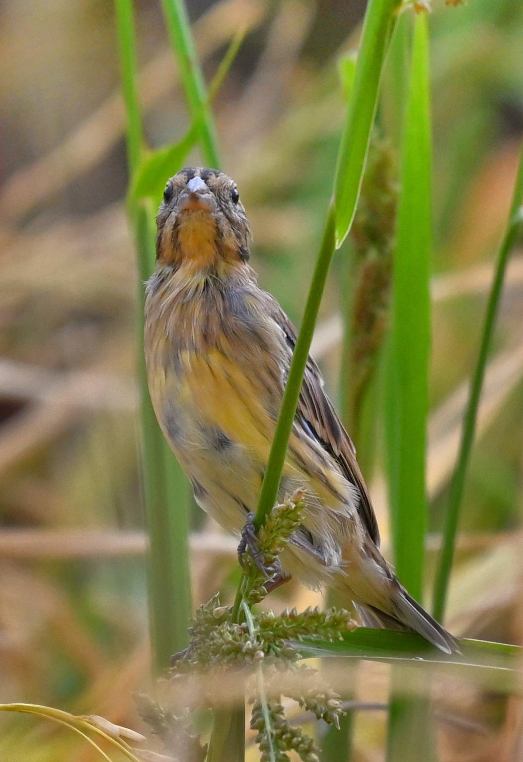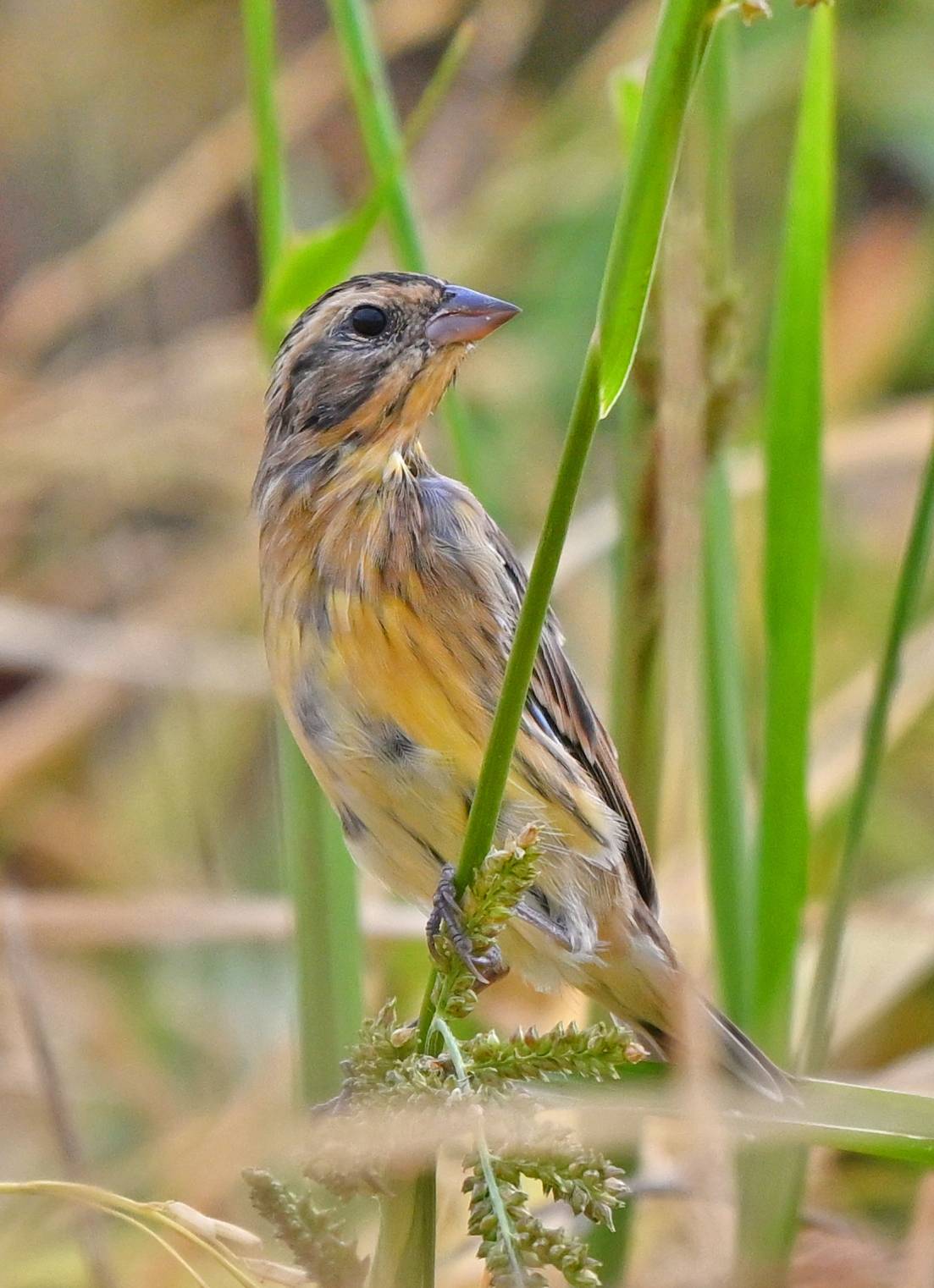 9月25日,记者在宜昌市卷桥河湿地观赏性稻田中拍摄到了国家一级重点保护野生鸟类黄胸鹀。黄胸鹀俗称禾花雀,体长14-15厘米,喜欢在环境优良的灌丛中觅食生活,是典型的河谷草甸灌丛草地鸟类。2017年世界自然保护联盟将黄胸鹀的评级从“濒危”升为“极危”,2021年中国更是将黄胸鹀升级为国家一级重点保护野生动物。宜昌市保有湿地8.24万公顷。卷桥河湿地通过植物、生物清淤及自然护坡等修复措施,重构了岸线生态系统,近年来,卷桥河湿地已观测斑头鸺鹠、黑鸢、蓝喉歌鸲、画眉、红嘴相思鸟等鸟类50多种,其中,连续三年观测到成群迁徙的黄胸鹀从此过境。(湖北日报全媒记者 刘曙松 摄)