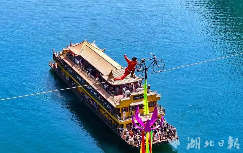 清江画廊这个国庆节将首次上演全新视觉盛宴《花家喜韵》土家婚俗巡游:船下看土家特色婚宴,船上看空中钢索自行车特技表演,一路有戏!此外,还特别请土家非遗传承人在景区旅游码头、武落钟离山、倒影峡等重点打卡区域开展非遗文化展演活动,非遗传承人与游客进行现场互动,学唱一首山歌、说一句土家语、跳一段花鼓子舞等民俗交流及互动。