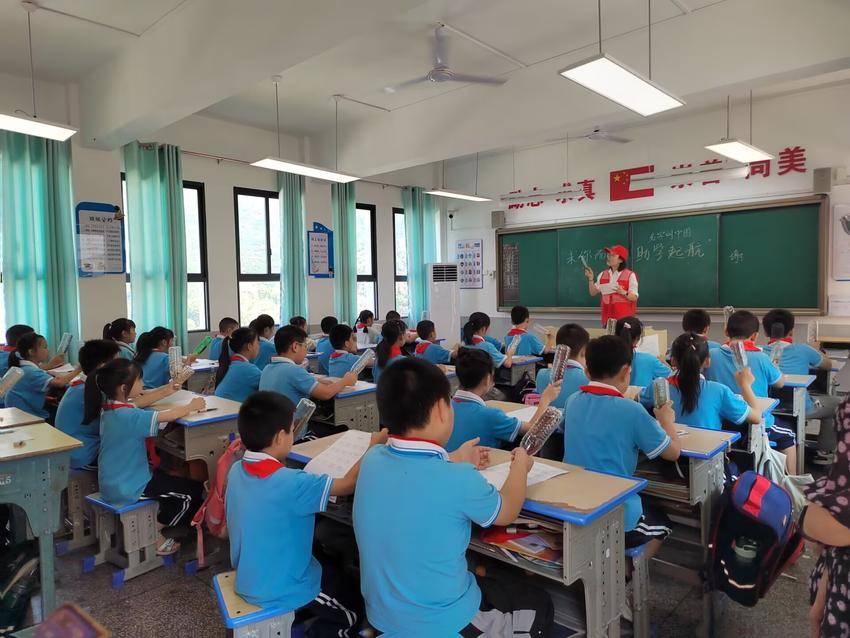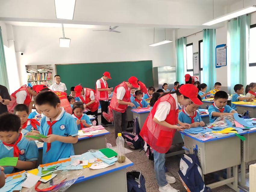 志愿者们为四一班学生筹备了丰富有趣的课程。音乐课堂上,动人的旋律在空气中流淌,激发着孩子们内心对艺术的热爱与向往。安全教育课则以生动的案例和互动式教学,为孩子们筑起一道安全防线。爱国主题手工织布课更是别具一格,在志愿者的耐心指导下,孩子们亲手编织五彩斑斓的织布,每一针每一线都凝聚着对祖国的深深热爱。书写梦想卡环节,孩子们用稚嫩的笔触写下自己的梦想。