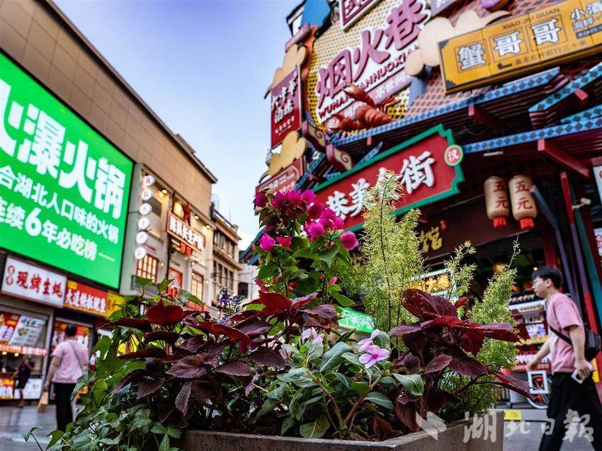 江汉路步行街沿线铺满花箱,常青藤、彩叶草、香彩雀喜迎各地游客;在汉口火车站片区,园林部门打造景观小品,三角梅、向日葵、百日草、常春花层次分明,喜迎祖国华诞;西北湖广场、菱角湖公园、常青公园等公园花境五彩斑斓,汇聚成江汉秋日最亮丽的色彩,令过往行人轻松愉悦。
