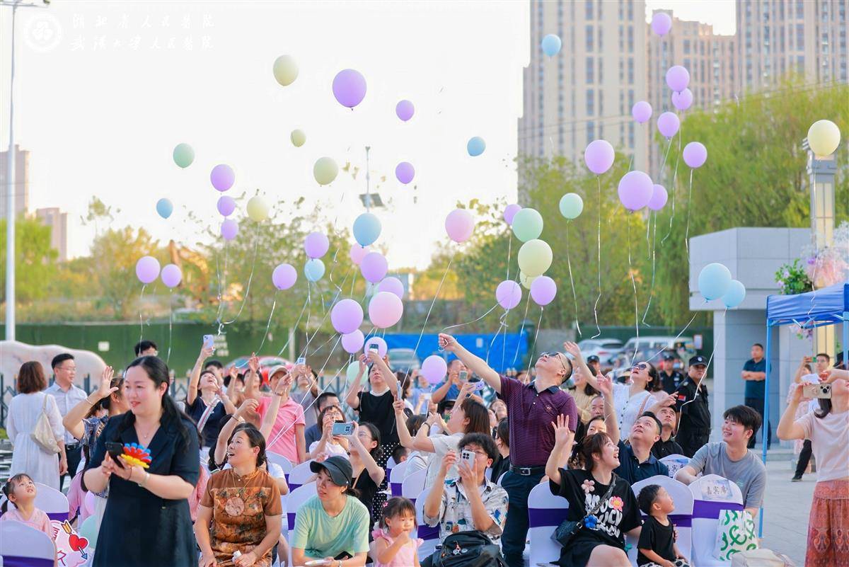 伴随着音乐,15对新人开始集体宣读爱的宣言。随后,与会嘉宾与人民医院全体领导班子成员共同完成礼成仪式,“温馨人民·幸福港湾”武汉大学人民医院2024年集体婚礼圆满礼成。在歌声中,现场亲友共同放飞气球,新娘们将寓意幸福的手捧花抛出,传递幸福的信号。