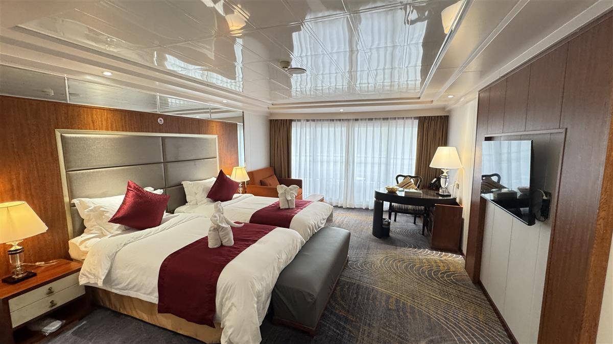 长江贰号豪华游轮长139.05米,宽19.6米,满载452人,外观大气俊朗,被誉为长江游轮中的“美男子”。今年年初,长江贰号豪华游轮进行了服务设施全面升级。全新升级后的长江贰号,拥有190间全阳台观景客房,700余平米的多功能厅、室内恒温恒湿泳池、健身房、康养中心、休闲茶社、酒吧、咖啡吧等。