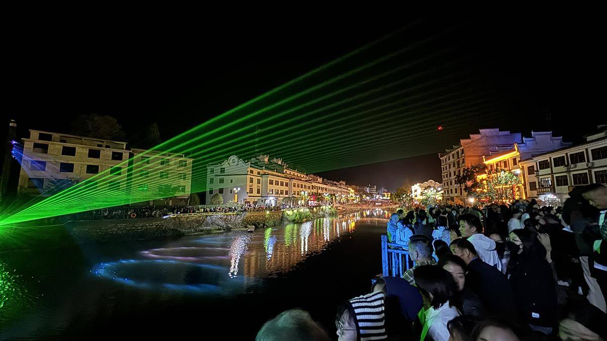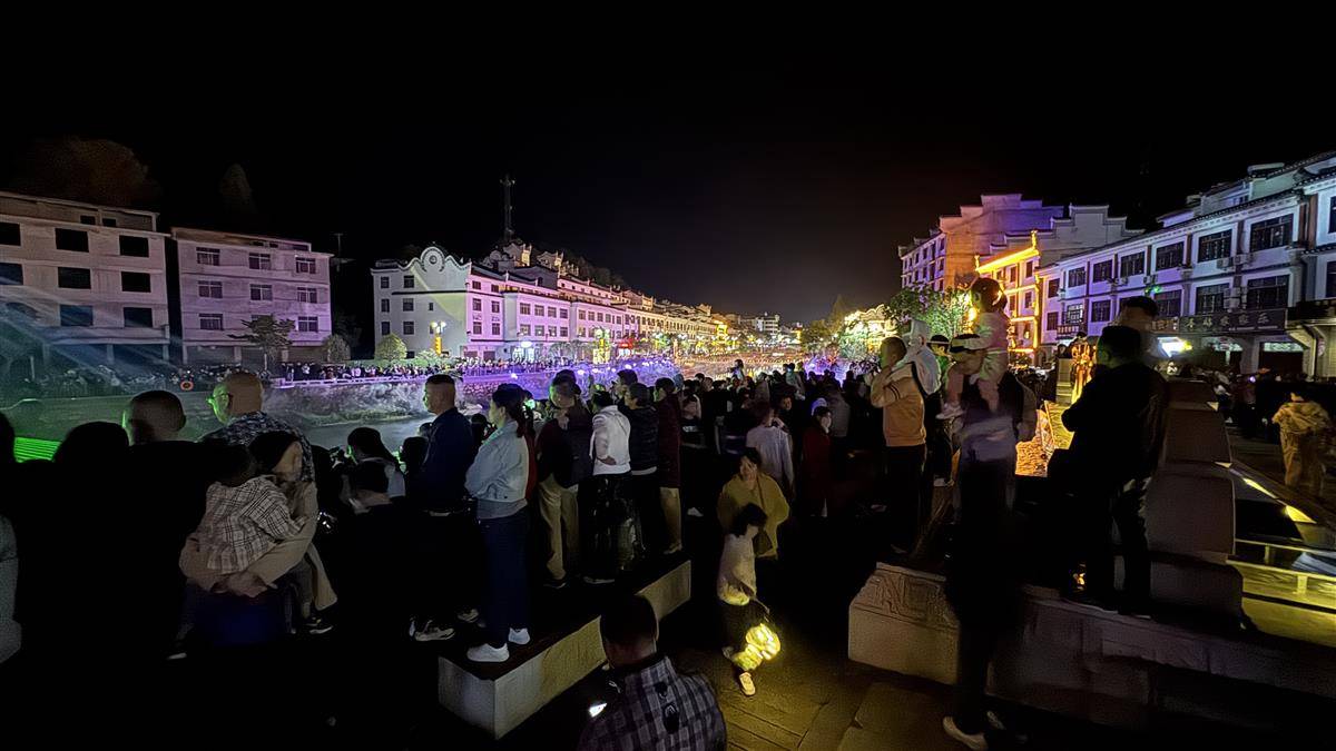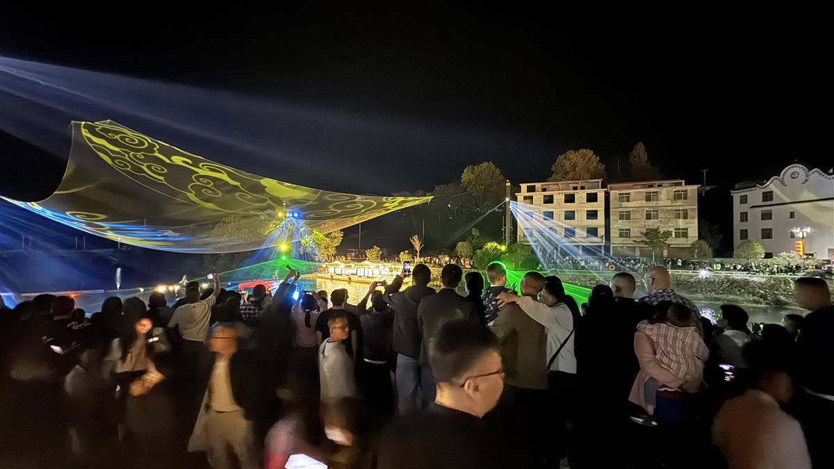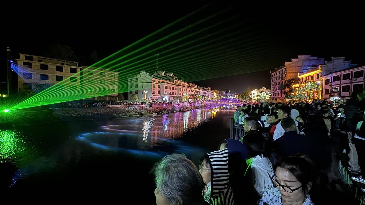 “想不到一个山区古镇有如此绚丽多彩的光影秀!”来自武汉的刘先生说,“这次国庆假期,我是冲着天堂寨来的。刚刚吃吊锅时听店老板说晚上有表演,所以我留下来看看,没想到挺精彩!”