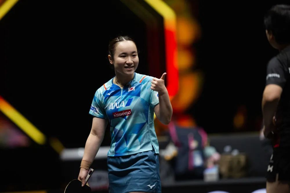 伊藤美诚竖起大拇指点赞。新华社记者 肖艺九 摄