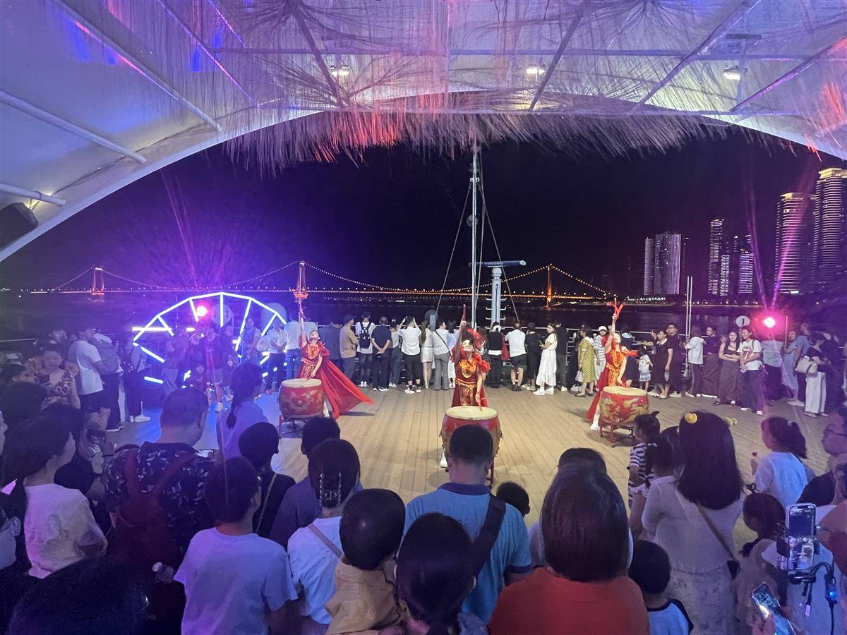国庆假期,武汉文旅集团两江游览游船人气爆棚,迎来了客流高峰,景区全天接待游客量破万人次,游船上古琴独奏、诗词诵读、妙笔凝书、小丑互动、吉他演奏等文化主题活动,让游客纷纷大呼“过瘾”。