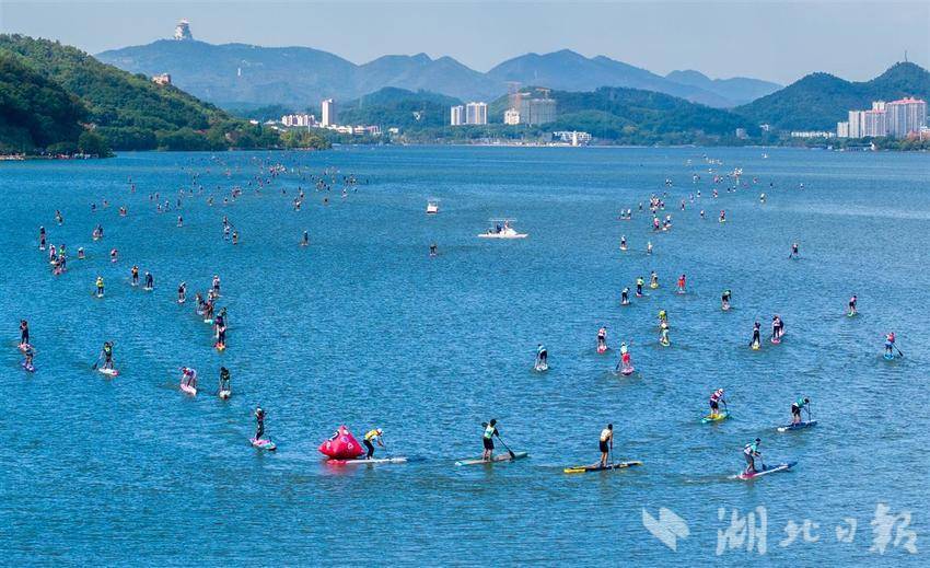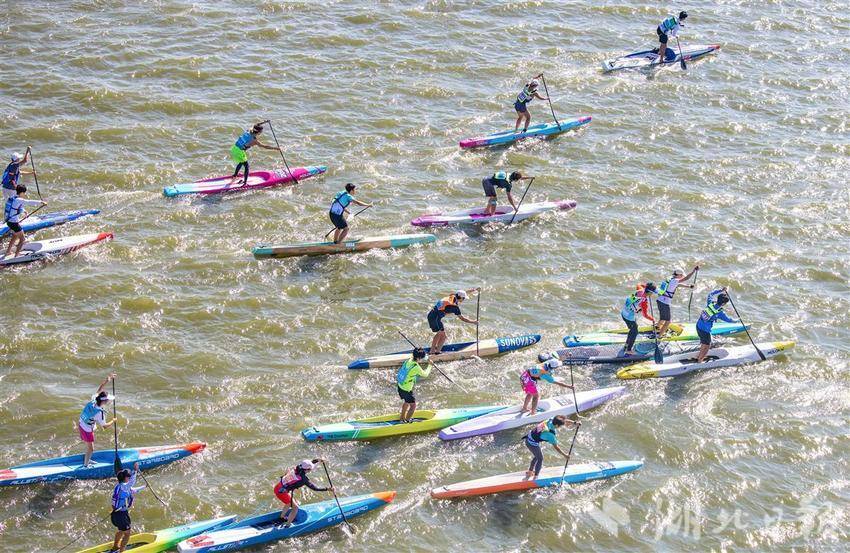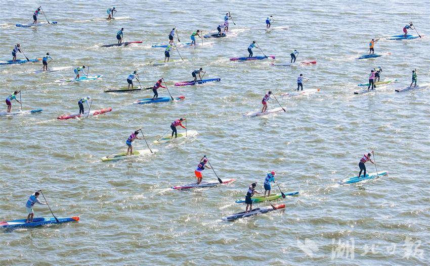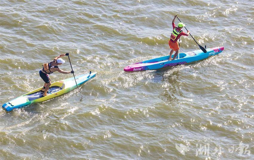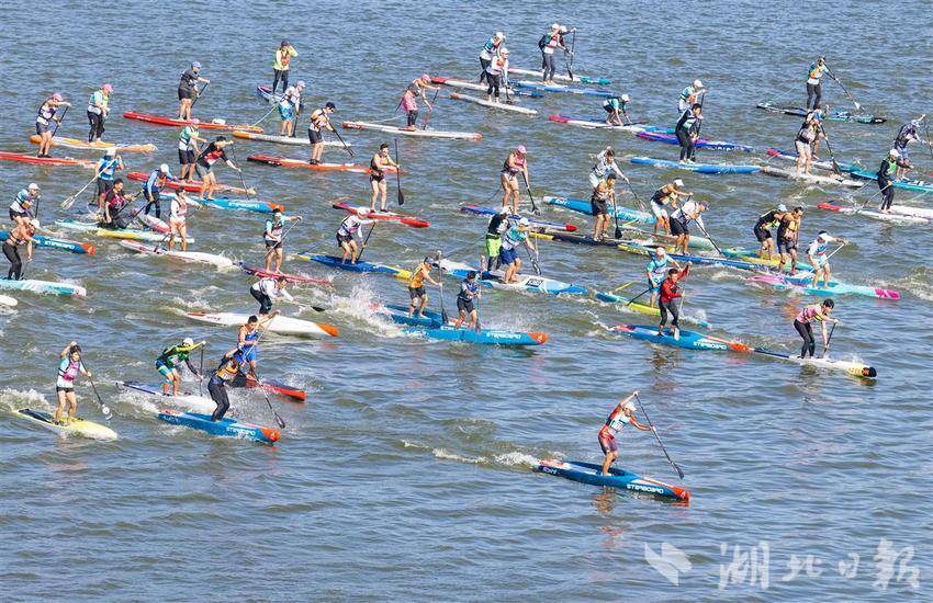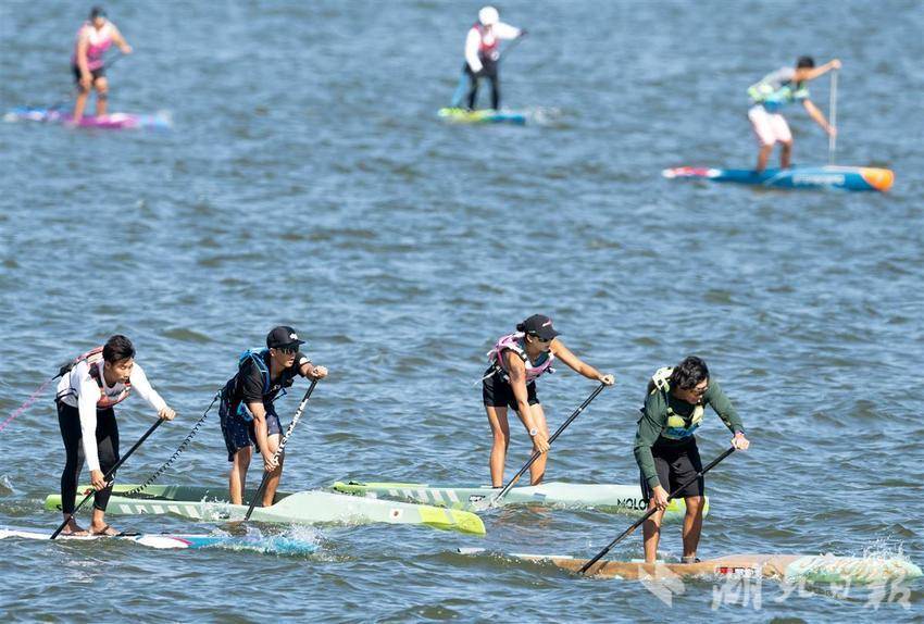 本次比赛是国际A类体育赛事,也是亚洲范围内最高级别的桨板赛事,来自中国、伊朗、沙特、日本、韩国等20个国家和地区代表队954名运动员参赛。黄石通过开展国际水上体育赛事,深入推动“体育+文旅”文体旅深度融合,为城市发展注入新活力。图为运动员在进行12KM长距离赛决赛。(湖北日报全媒记者 薛婷 通讯员 周巍 汪泽栋 摄)