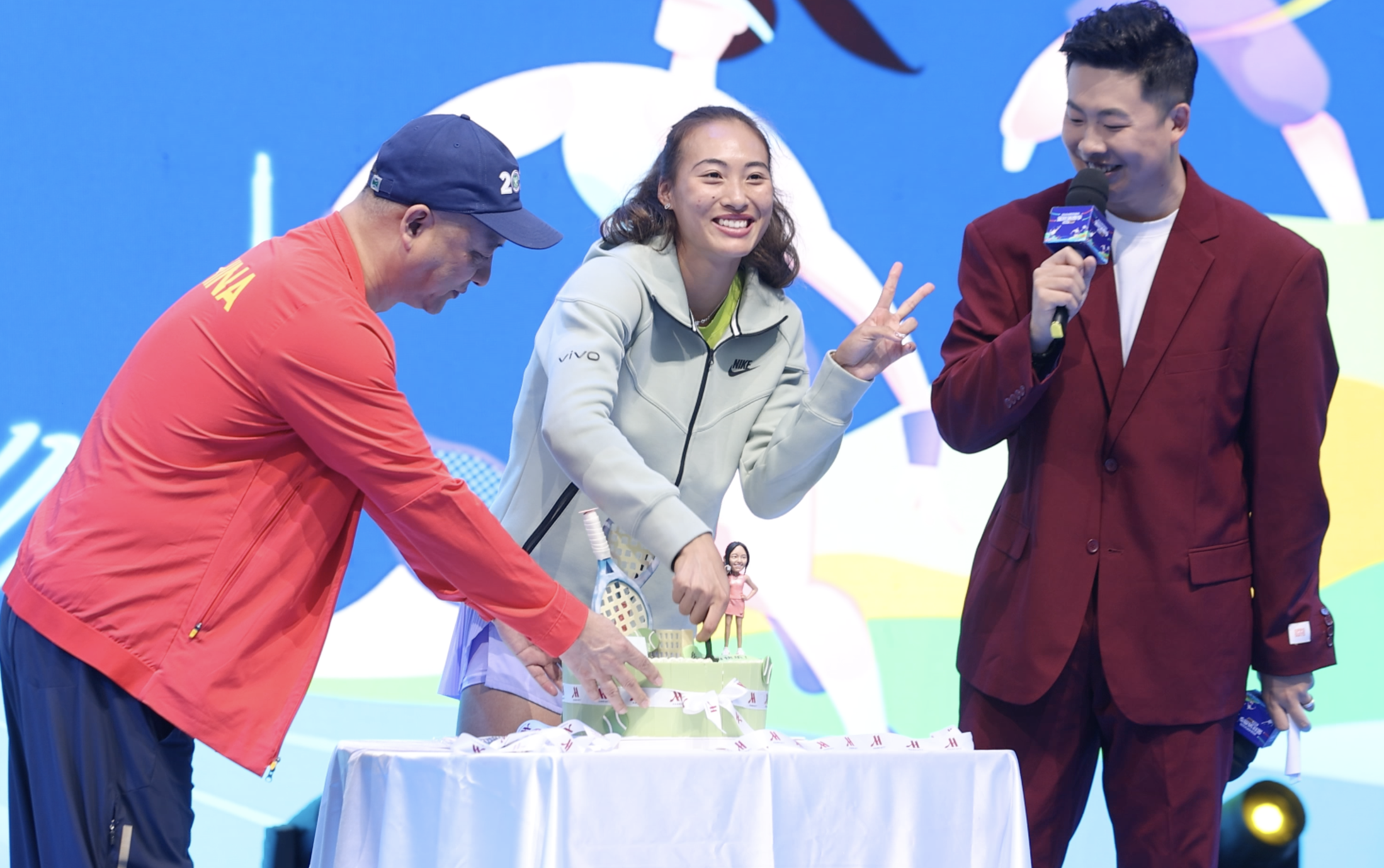 10月8日,武汉网球公开赛为中国选手郑钦文举办生日会,庆祝她22岁生日。(湖北日报全媒记者 柯皓 摄)