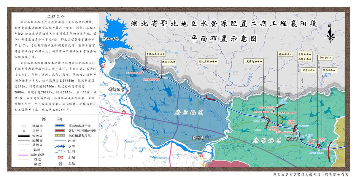 鄂北二期工程总投资94亿元,是鄂北地区水资源配置工程打通输水线路的“最后一公里”的关键工程。该工程在鄂北一期工程通水基础上,新建鄂北总干渠21个分水建筑物至各受水对象间的分水单元,向襄阳、孝感和随州的11个县(市、区)供水,以此改善受水区的农业灌溉和生态环境用水条件。线路总长332公里,新建各类水闸38座,新建泵站31座。
