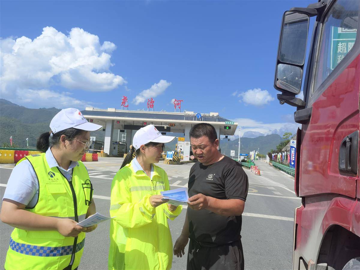 襄阳运营公司收费员向司机解释差异化收费政策。(湖北日报通讯员 杨艳清 摄)