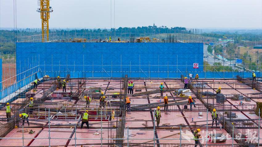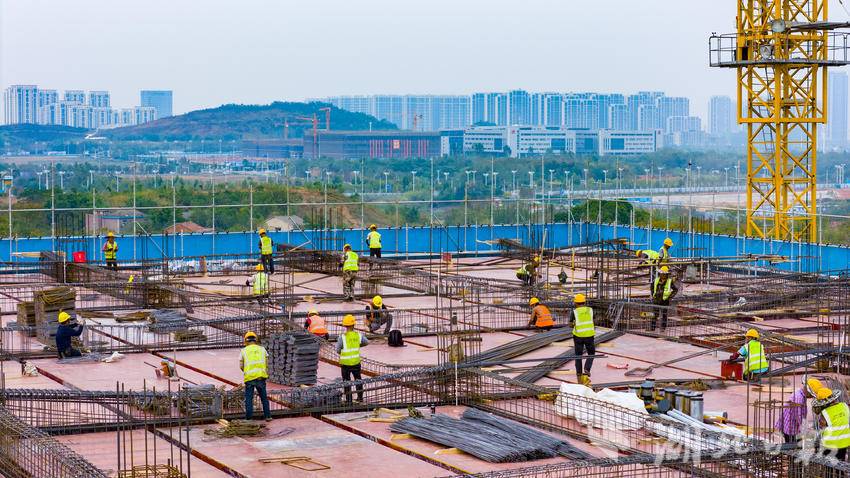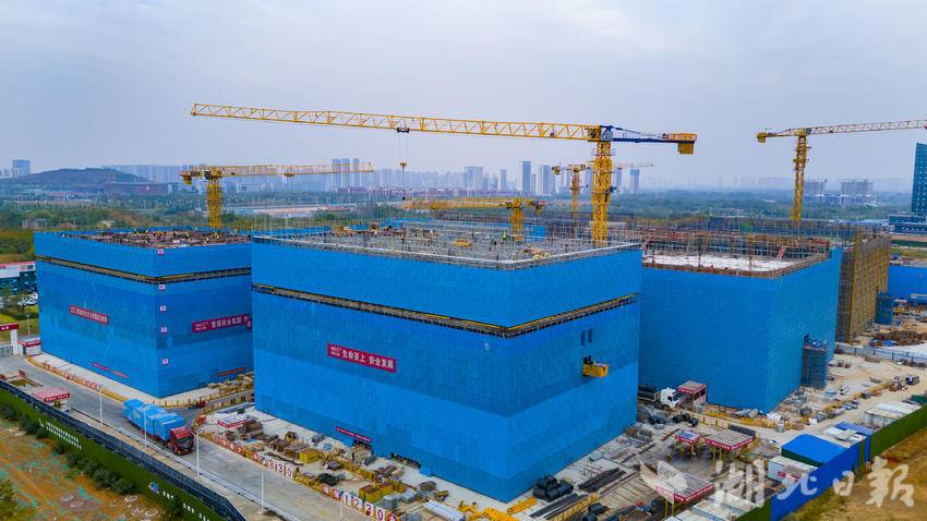10月10日,建设者们在光谷筑芯微电子精密器件智造基地项目(筑芯创研空间项目)首开区四栋中试车间项目工地加紧施工。近日,四栋中试车间完成全面封顶,项目建设按下“快进键”。光谷筑芯微电子精密器件智造基地项目建设规模约27.3万平方米,是武汉新城十大重点项目之一。项目首开区共八栋建筑单体,其中包括四栋中试车间和四栋试验车间。该项目是完善武汉新城生产服务功能的重要配套项目,也是武汉新城发展光电子信息、集成电路等产业的重要载体。(湖北日报全媒记者 魏铼 摄)