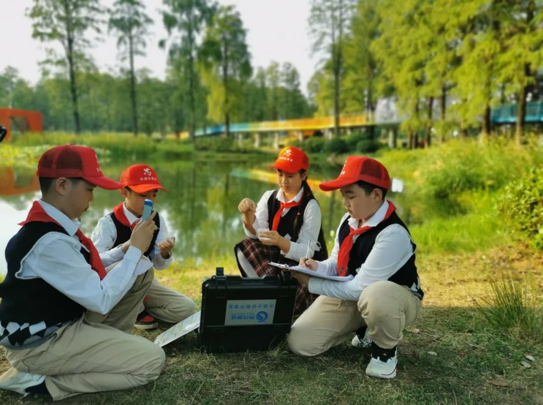 华侨城小学的孩子们对东湖水样进行检测。受访者供图