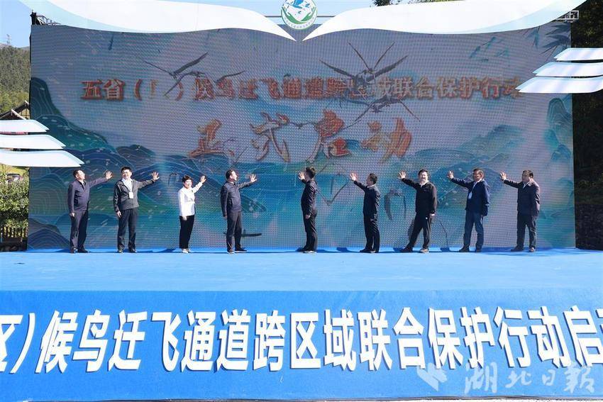 湖北日报讯(记者汪训前、通讯员杨光明)10月11日,五省(区)候鸟迁飞通道跨区域联合保护行动在湖南省永州市蓝山县启动。会上,湖北、湖南、江西、广东、广西五省(区)林业主管部门签署候鸟迁飞通道跨区域联合保护行动备忘录,共同探索候鸟保护省际合作新模式。