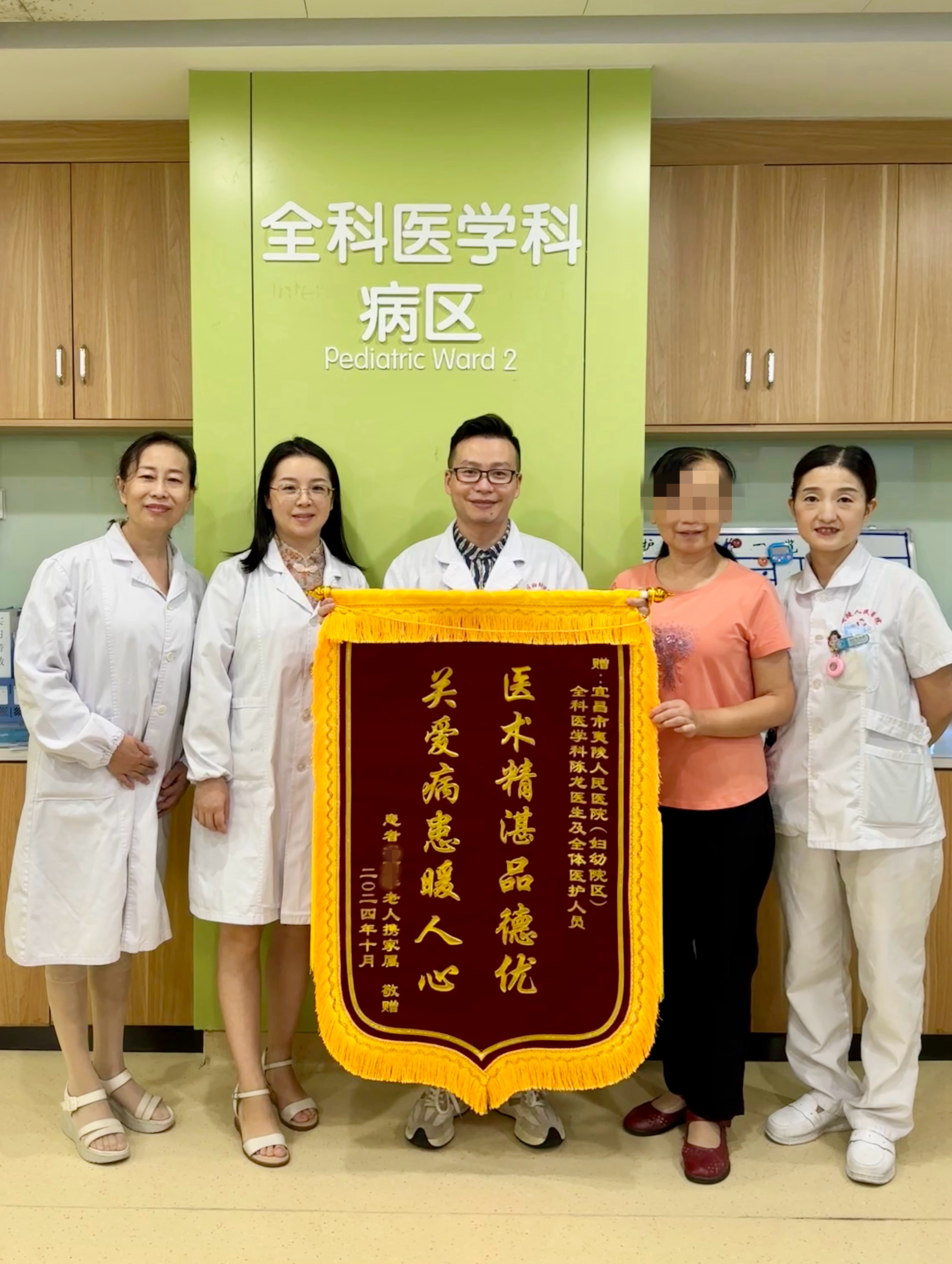 湖北日报客户端讯(通讯员赵婷婷)近日,夷陵人民医院全科医学科上演了温馨的一幕:一位患者家属手捧锦旗,激动地来到医护办公室,向在其母亲住院期间给予悉心照顾的医生和护士表达深深的感谢。