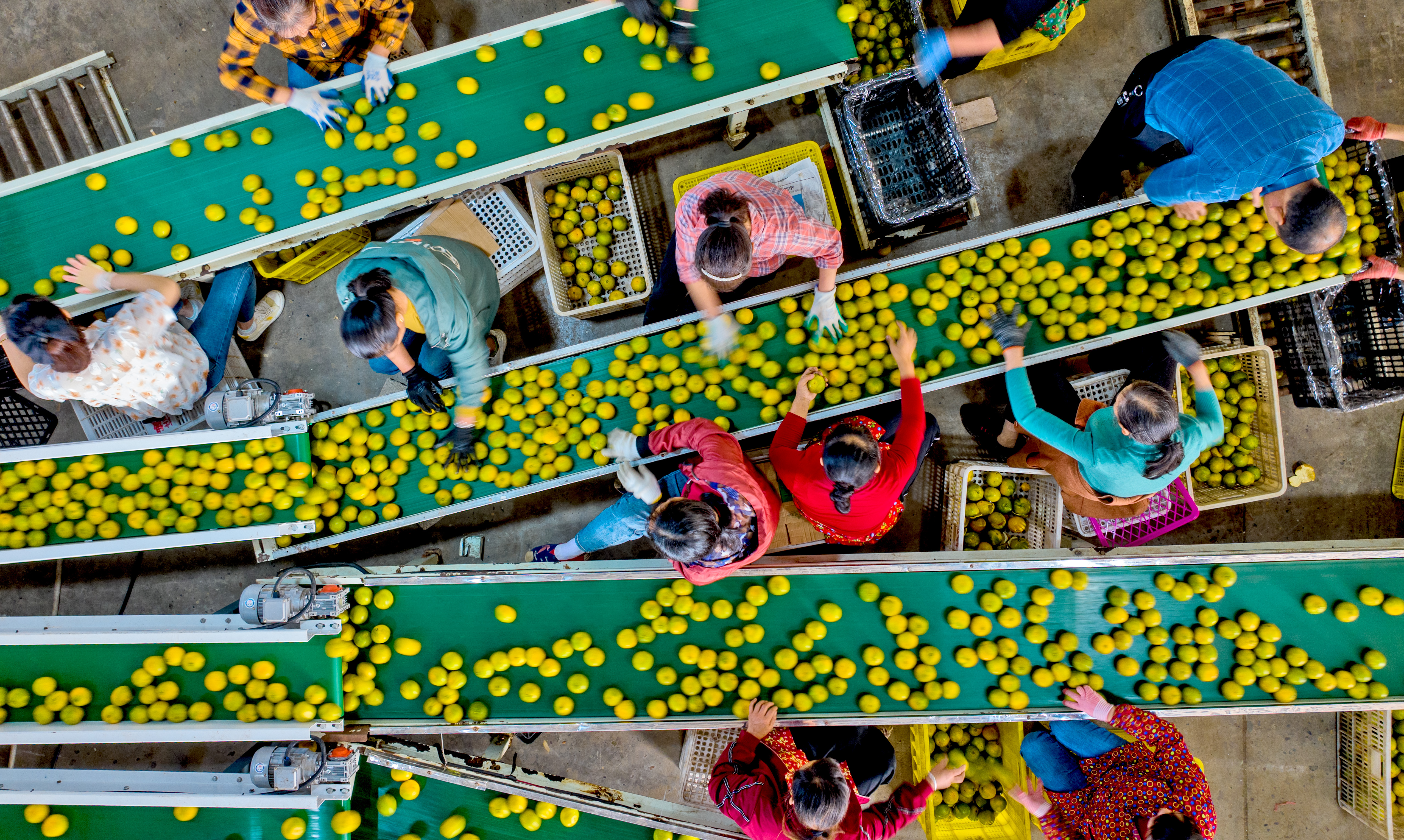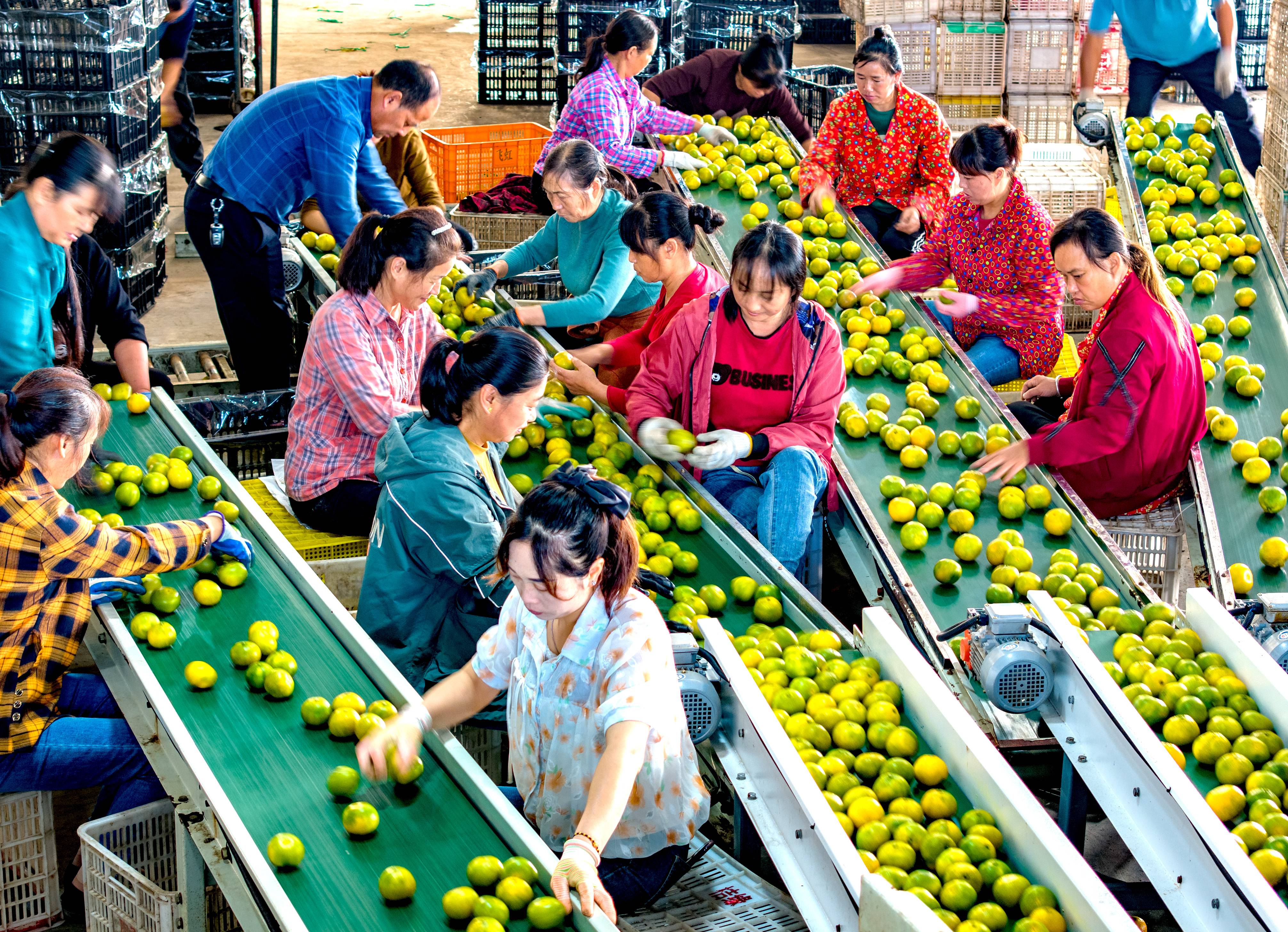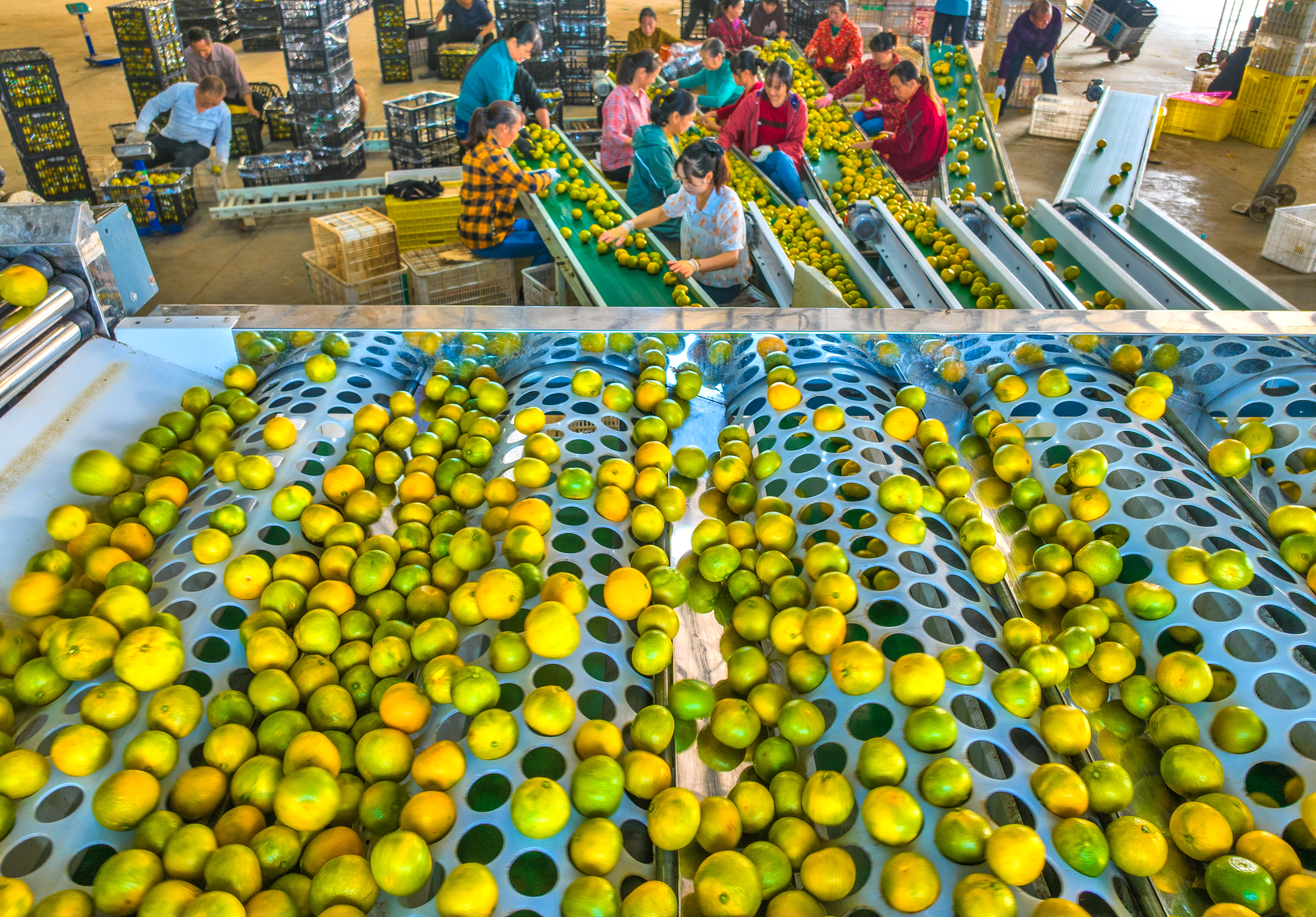 10月16日,枝江橘缘柑橘专业合作社分拣车间里,一车车刚采摘的柑橘不停运进车间里,经过精细的清洗、分拣、装箱、打包,最后由收购商装车发往全国各地。枝江是我省柑橘主产地之一,眼下正是早熟柑橘上市的时候,来自泰国、俄罗斯与国内各地等国际国内市场的订单纷至沓来。橘缘柑橘专业合作社采取“电商、线下农超对接、直达市场”的三线销售模式,销售网络遍布全国30多个大中小城市。目前总共销售了2万多吨,产值达到1亿元,人均年增收2000元。据了解,枝江市今年种植柑橘35.65万亩,预计总产量80万吨,产值可达32亿元。(湖北日报全媒记者 刘曙松 毛晓娜 摄)