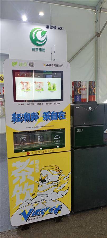 借助与鹤茶茶业集团共同投资建设新式茶饮项目,首次参加硒博会的湖北楚茶科技集团有限公司将自主研发的无人智能茶饮机带到了现场。