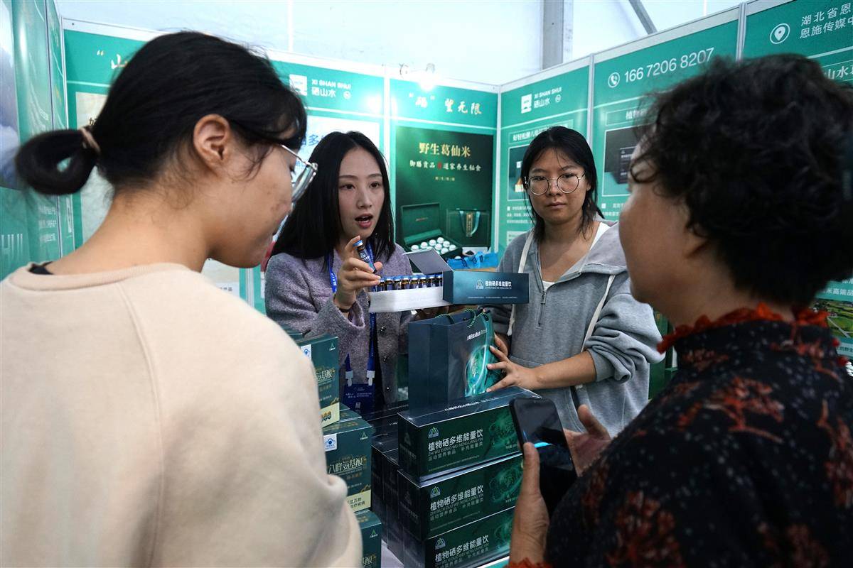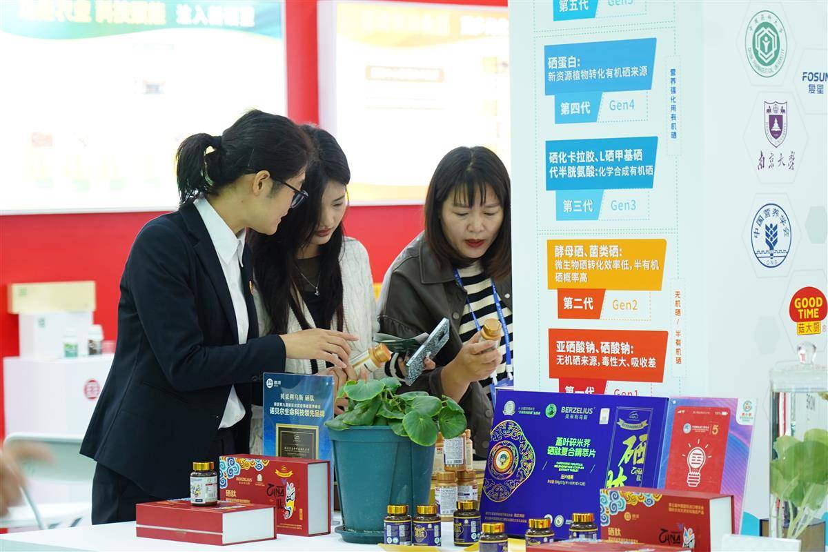 在恩施硒山水品牌运营有限公司展台,首次亮相的植物硒多维能量饮受到年轻消费者关注。