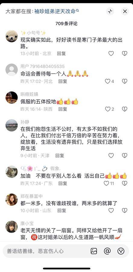 “有志不在‘身高’,优秀!”在抖音上,网友“人生如渡”,给她竖起三个大拇指。