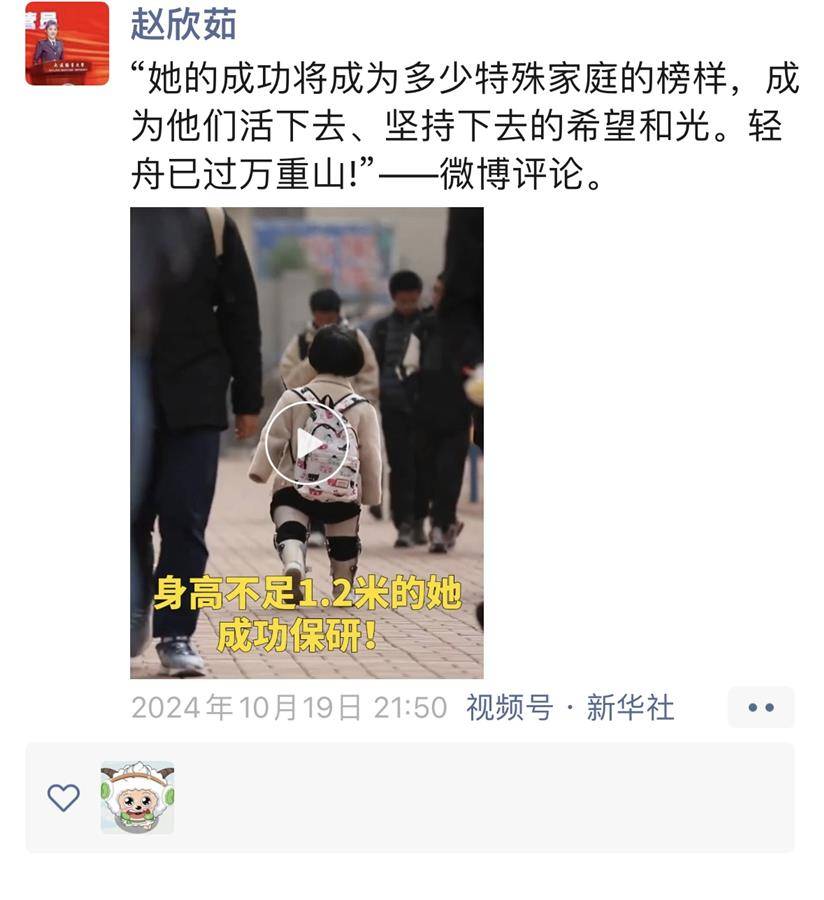 “这是我隔壁班的同学,她太不容易了……”“人生有梦不觉远,身残志坚也能成就精彩人生!”