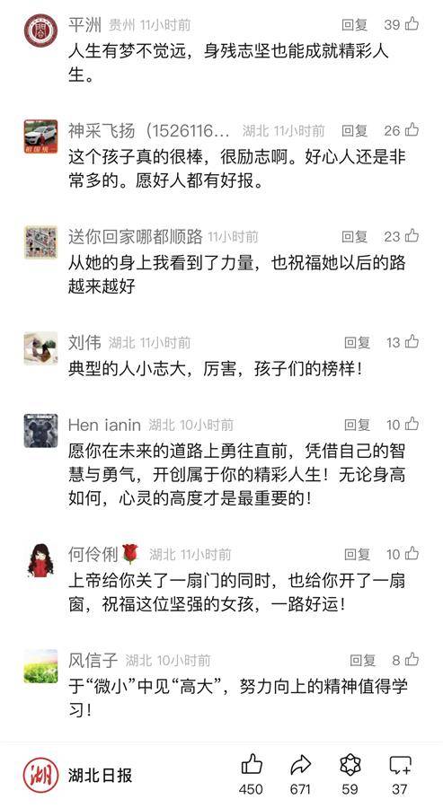 网友“早起很烦”说,“没有一流的人才,只有一流的努力。小小的身体有大大的能量,不畏艰辛地把困难踩在脚下,迎接更好的未来。”