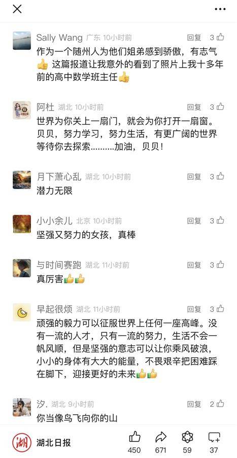 来自湖北的网友“Mr.Chen”留言:“为我随州的小学妹、小老乡加油,感谢一路以来所有人的关心关爱,希望她未来可期,一路光明!”
