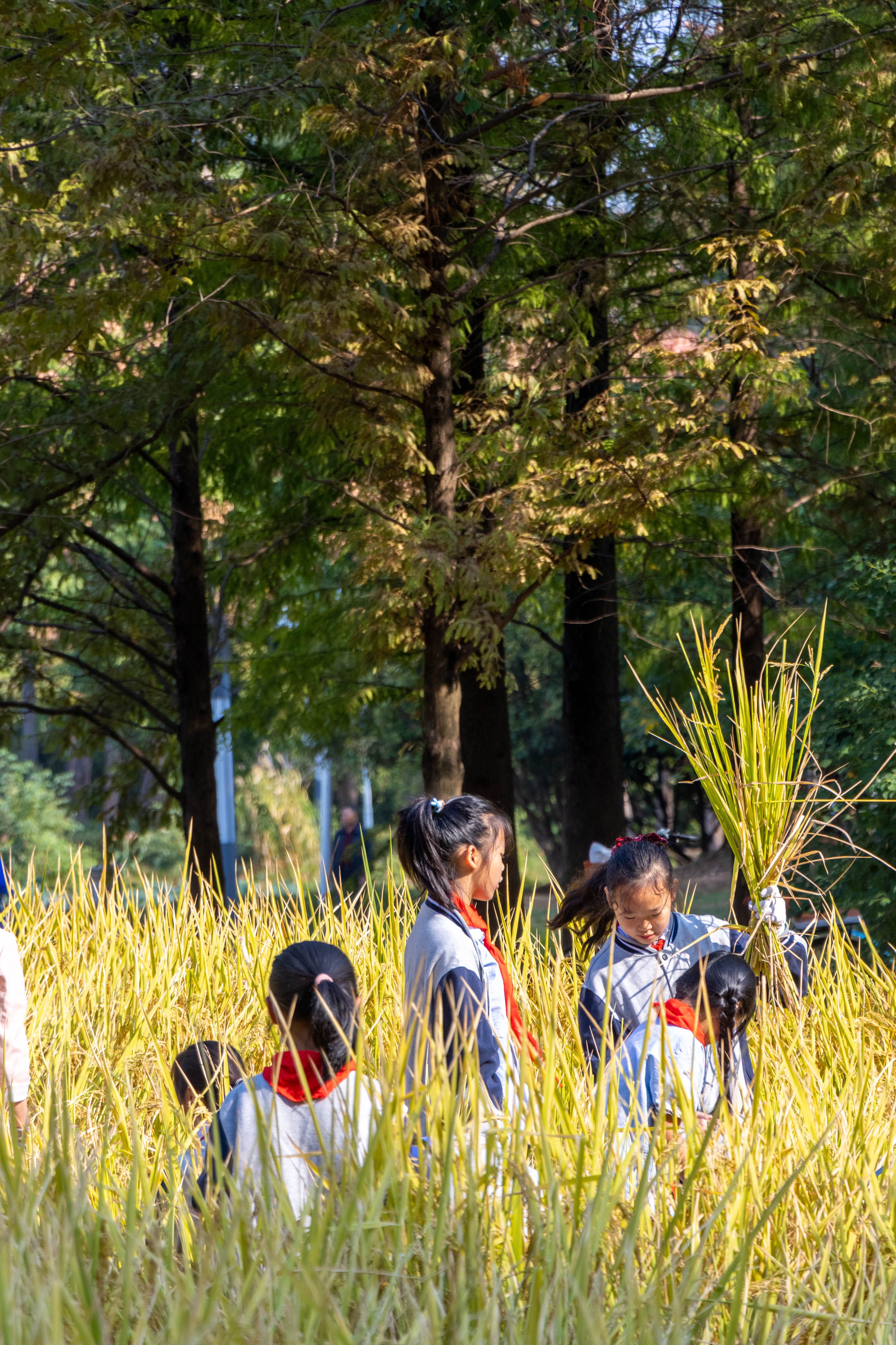 10月8日,武汉市园博园学校旁,杉杉湿地的稻田里迎来了一场别开生面的劳动教育实践课。60余名师生及家长代表手持镰刀,脚踏泥土,亲身体验“粒粒皆辛苦”的深刻内涵。