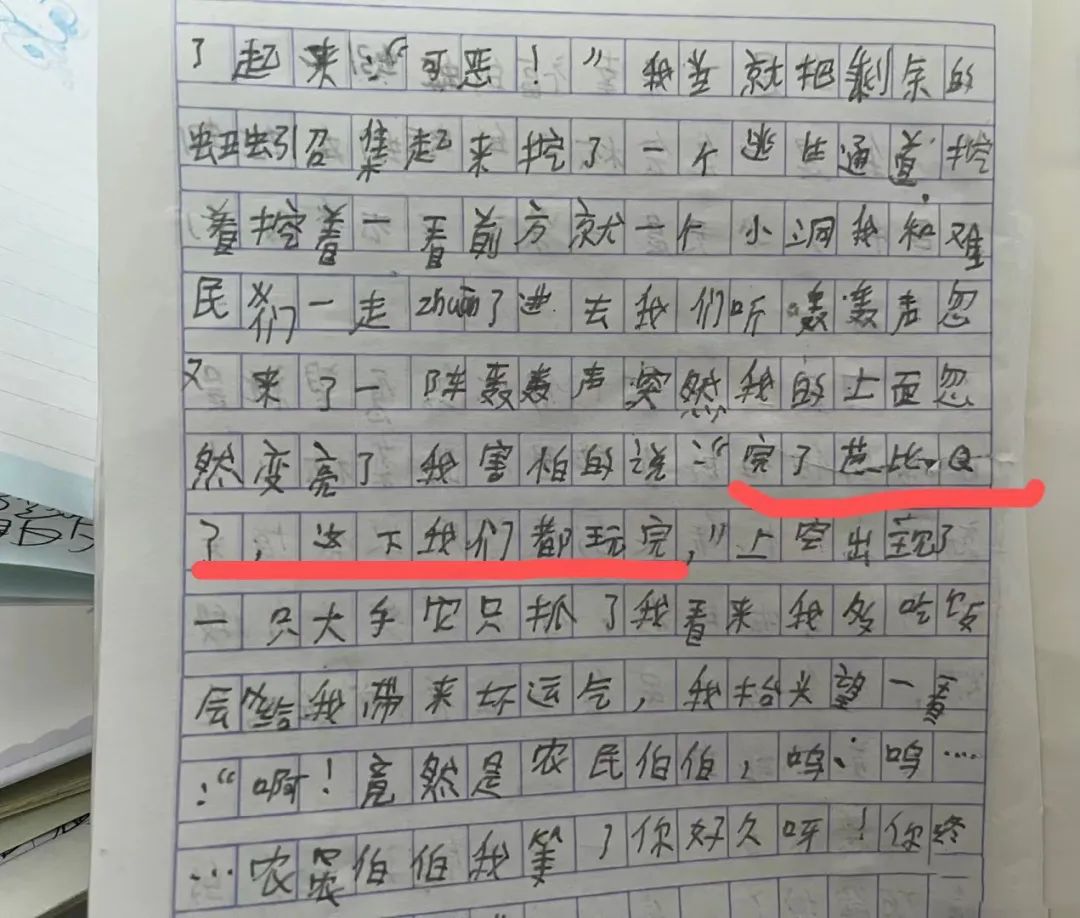 小学生在作文中使用网络用语“完了芭比Q了”。受访者供图