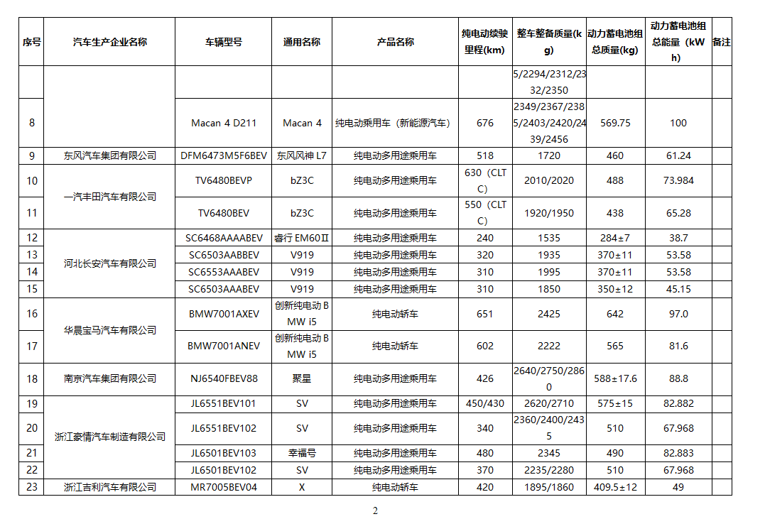 湖北日报讯(记者吴文娟)工信部网站日前发布《减免车辆购置税的新能源汽车车型目录》(第十批),其中,减免车辆购置税的新能源汽车车型目录纯电动汽车-乘用车车型如下: