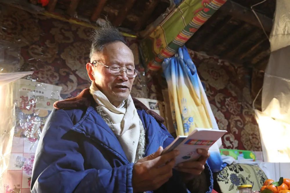 王万青在家中阅读书籍。(新华社记者 马莎 摄)