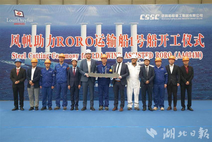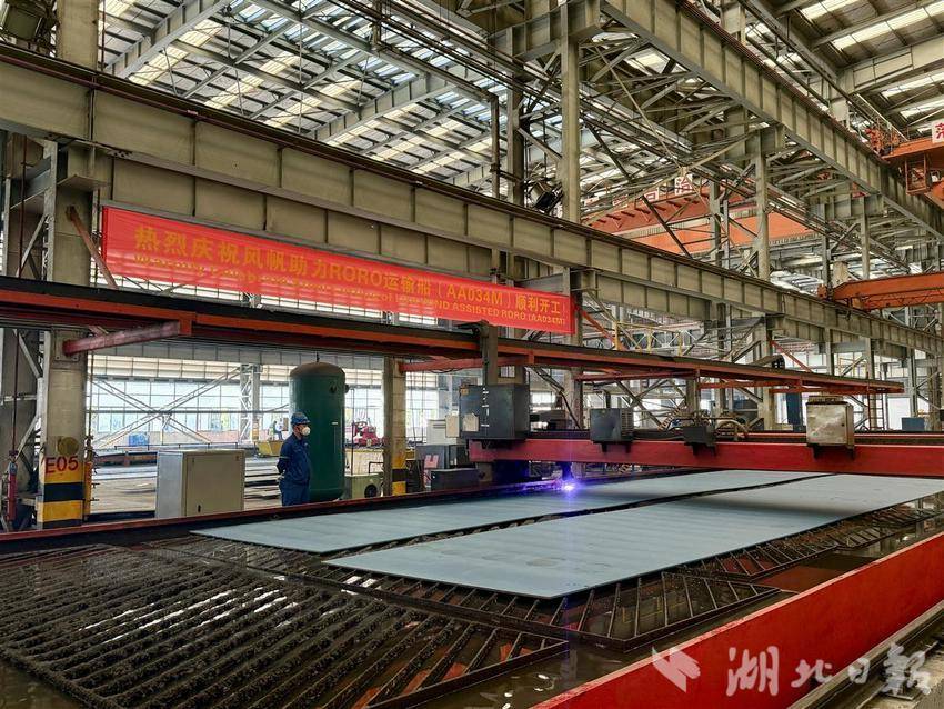 湖北日报讯(记者李源、通讯员周建仁)10月24日10时15分,中国船舶武昌造船双柳厂区建造车间,等离子切割机弧光闪耀。随着第一块钢板开始切割,全球首艘6风筒风帆助力滚装船启动建设。