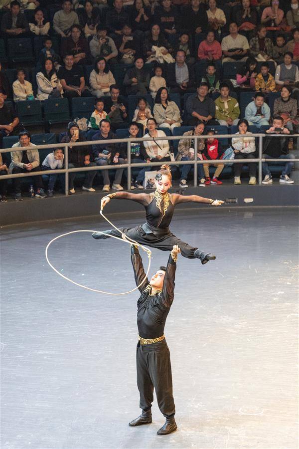 福建省杂技团带来的《古韵新声-绳技》表演。