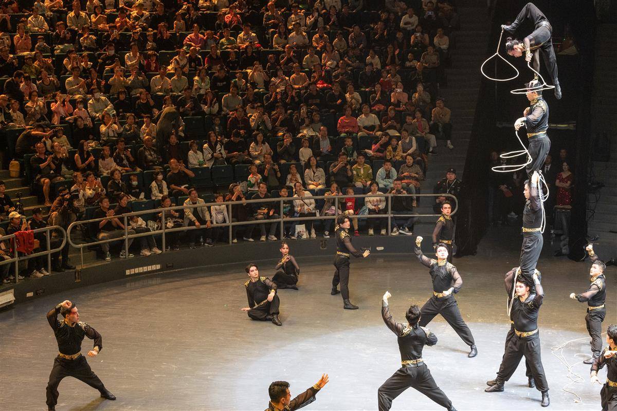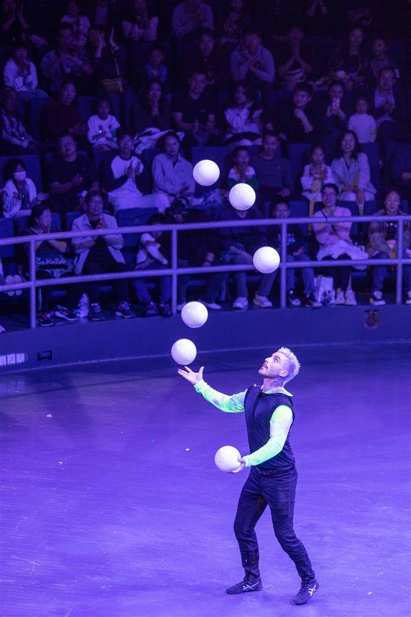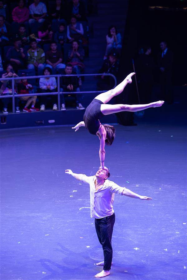 当晚,来自加拿大、西班牙、乌克兰、捷克等7个国家的9个顶尖杂技、滑稽节目汇聚一堂,以新、难、奇、险、美的杂技语言交流,展示各国杂技艺术的独特魅力。(湖北日报全媒记者任勇摄)