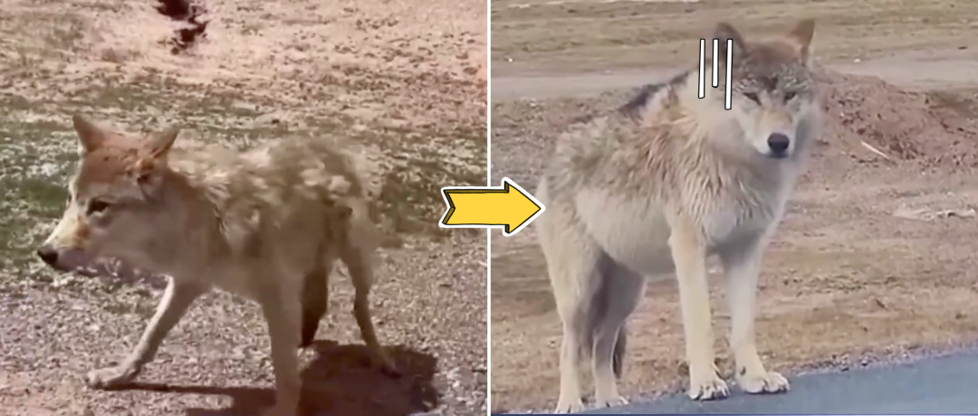 不过,这匹野狼现在的状况却让人担忧。因为不断被人进行投喂,这匹最初毛发凌乱、瘦到皮包骨头的狼,现在不但体型变得滚圆,还会向过往车辆撒娇讨食。这匹“网红狼”是怎么变成“胖狼”的?