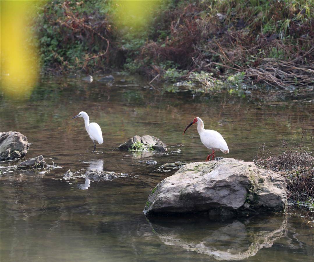 十堰犟河流域发现朱鹮(通讯员 刘洪军 摄)