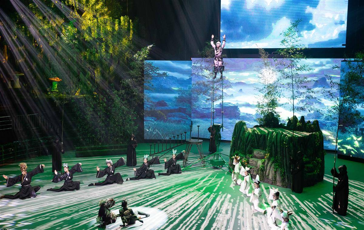 杂技剧《黑白侠影·太极熊猫》演出现场。(湖北日报全媒记者 薛婷 摄)