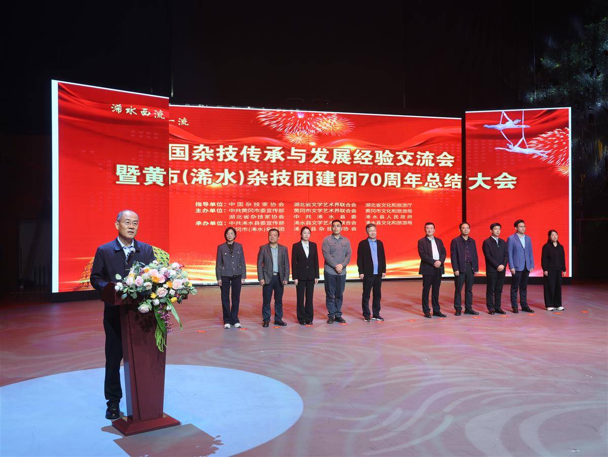 湖北日报讯(记者刘毅、通讯员方俊、李梦瑶)10月27日晚,在浠水县杂技馆,黄冈市(浠水)杂技团建团70周年总结大会暨杂技剧《黑白侠影·太极熊猫》首演式隆重举行,杂技皇后夏菊花被颁发“建团70周年突出贡献个人”奖。