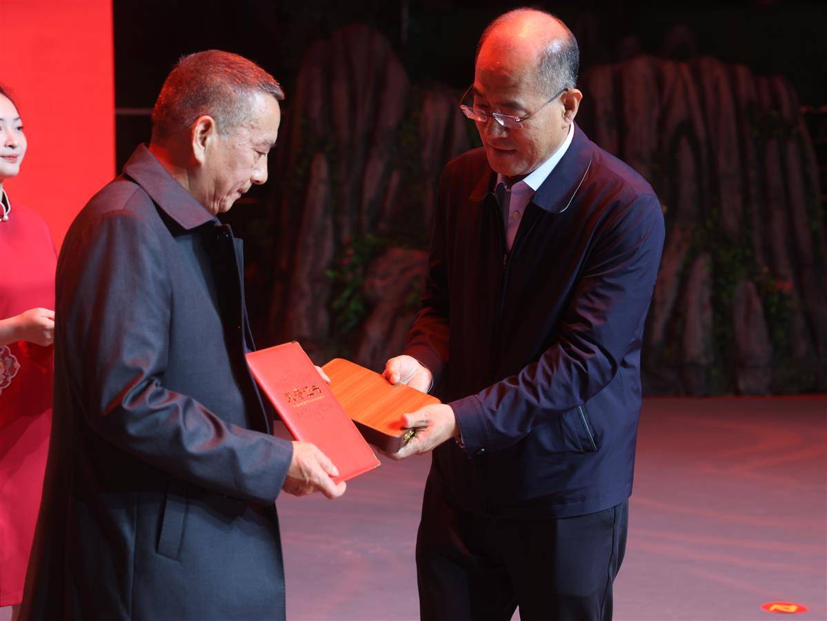 夏菊花家属代领“建团70周年突出贡献个人”奖项。(湖北日报全媒记者 刘毅 摄)