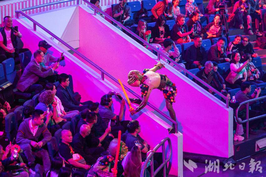 历时4天的系列演出,共有来自15个国家的18个顶尖杂技、魔术、滑稽节目汇聚一堂,展现世界杂技艺术的最新发展成就。(湖北日报全媒记者 任勇 摄)