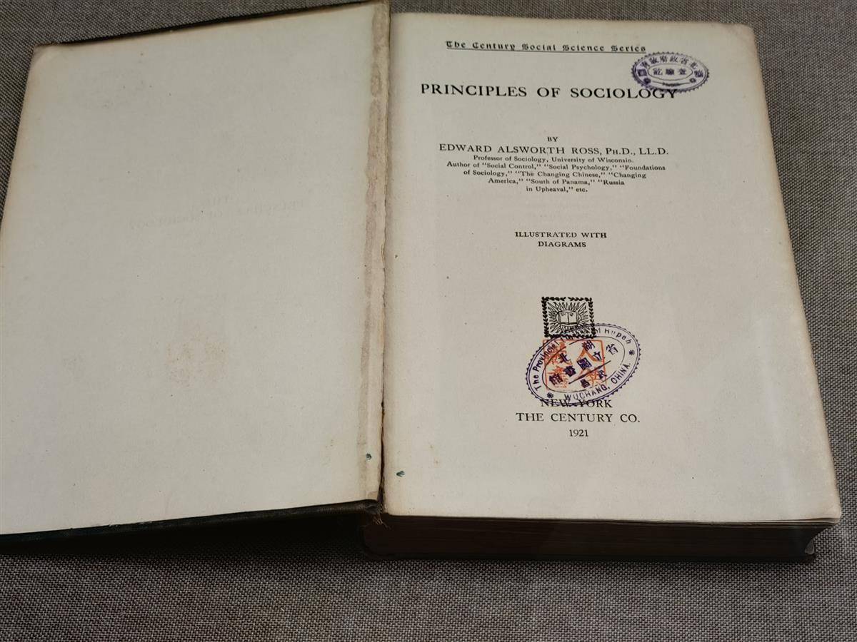 展品中有一本1921年美国出版的《社会学原理》,它原来的主人是中共一大代表李汉俊。陈龙介绍说:“这本书上有一枚红色的藏书印,钤着‘人杰藏书’。李汉俊,字人杰。”这本《社会学原理》能收入省图,得益于金石大家易均室的眼界与魄力。