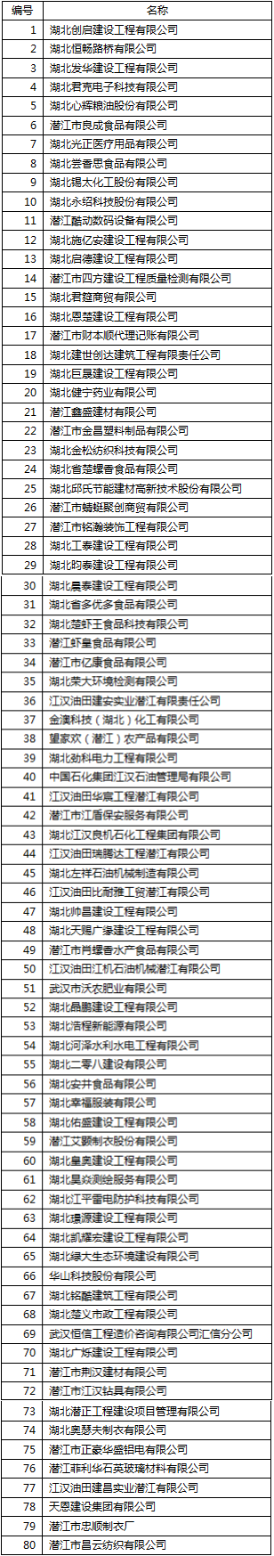 湖北日报客户端讯(通讯员 罗珊珊 马荣)目前,省市场监管局公布湖北省第十七届(2022—2023年度)“守合同重信用”企业名单,我市湖北创启建设工程有限公司等80家企业上榜。