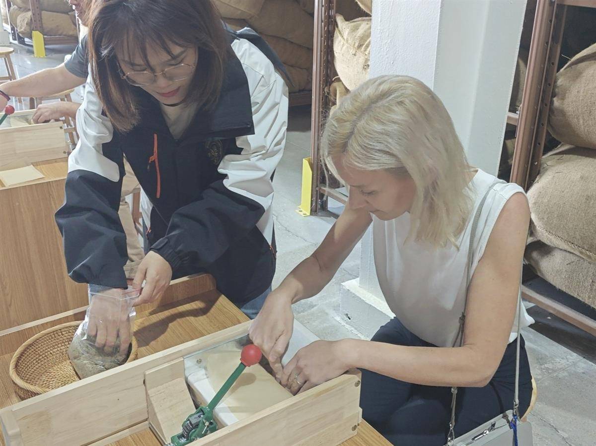 匈牙利媒体考察团成员体验艾条制作。