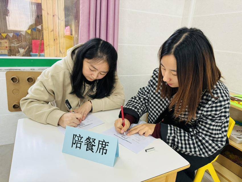 在座谈环节中,保教园长朱利军从体验游戏、明确职责和逐月推进等方面总结了关于三方配合的情况。时刻将办园质量放在首位,统一步调,齐心协力。后勤园长刘娟就孩子平时膳食方面等孩子入口的食物来源等流程进行了详细的介绍,做到让家长放心。家委会成员现场对幼儿园活动的组织、食堂规范的加工操作流程及整洁的卫生环境给出了高度评价。