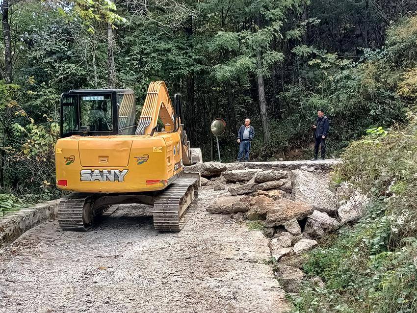 近期,该路段约30米长的路面出现路基下沉,村两委发现这一情况后,针对目前正是秋收农忙时节,过往车辆的高峰期,为了从源头消除安全隐患,便立即组织相关部门到现场调研,制定抢修方案,并迅速组织实施,预计一周内抢修完毕,确保交通安全。