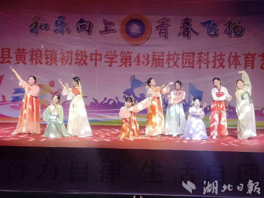 湖北日报客户端讯(通讯员邓元勇)为了丰富广大师生的校园生活,激发学生对科技、艺术和体育运动的兴趣爱好,给学生们提供展示艺术才华的机会,培养团队合作精神,提升青少年健康的审美情趣和良好的艺术修养,展现学校向真、向善、向美、向上的校园文化。10月29日至10月31日,兴山县黄粮镇初级中学隆重举行了第43届校园科技体育艺术节,在这三天的时间里校园化身为才华与激情的舞台,大家沉浸在精彩的比赛和表演中,共度了一段难忘的美好记忆。