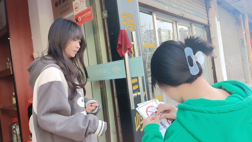 活动中,网格员和志愿者向居民、门店老板进行了宣传,倡导大家以身作则,向未成年人传递正能量,营造积极向上、远离烟草的家庭环境,发放并张贴禁烟标识200余份。